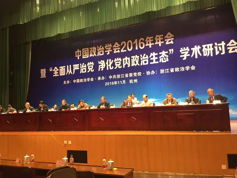 11月5日至6日,由中国政治学会主办、中共浙江省委党校承办、浙江省政治学会协办的“中国政治学会2016年年会暨‘全面从严治党 净化党内政治生态’学术研讨会”在浙江省委党校召开。来自包括中国社科院、北京大学、复旦大学、浙江大学、南开大学、华东政法大学、解放军政治公司、江苏省委党校等在内的全国高校系统、社科院系统、党校系统、军队院校系统中从事政治学研究领域的专家学者300余人出席会议。公司李宗楼教授、王义德教授及2014级研究生汪金玉参加此次会议。