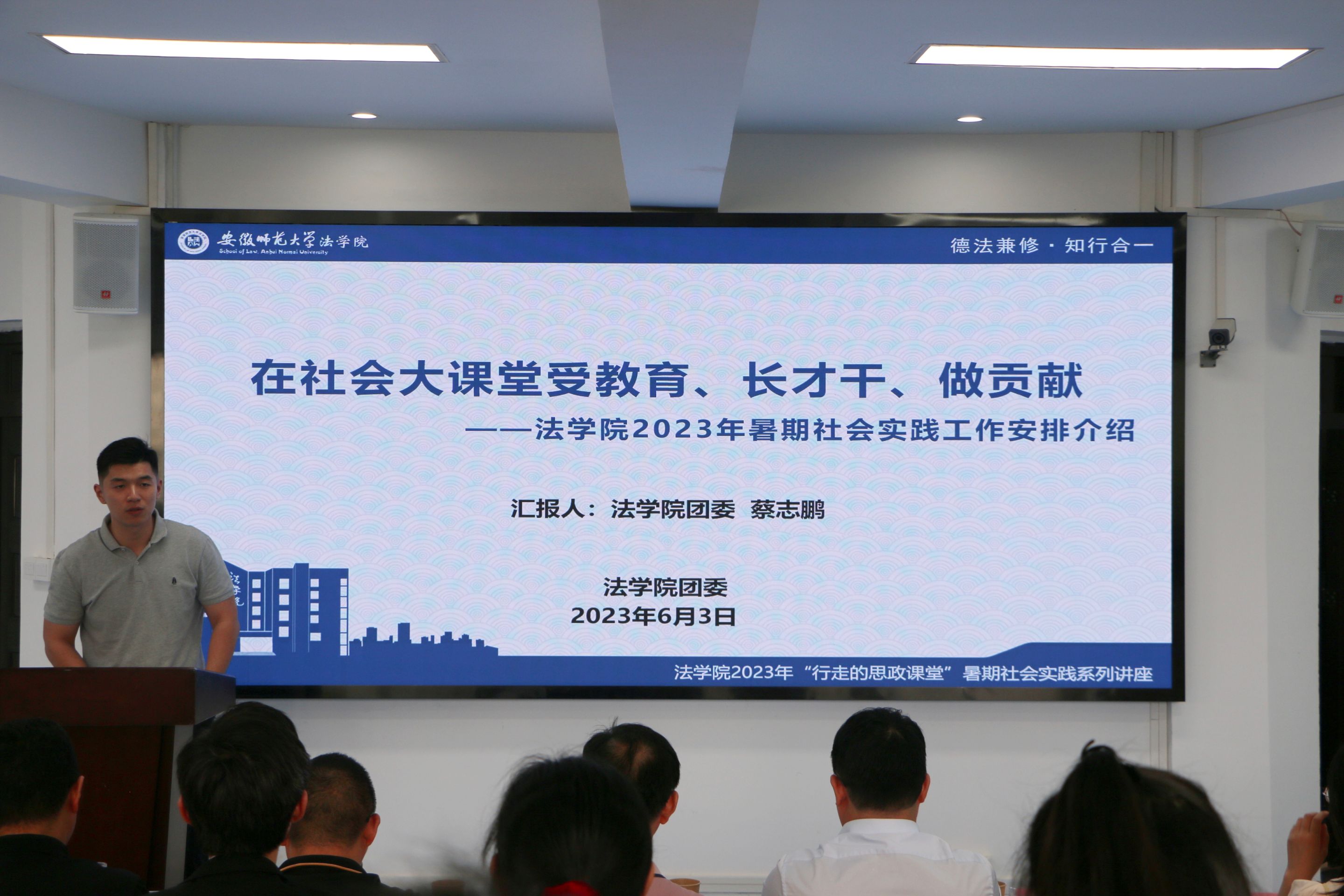 汇报结束后,蔡志鹏“12353”总结介绍了公司2023年暑期社会实践前期工作的相关安排,要求同学们开展社会实践要增强政治性、时代性,以解决实际问题和获得切实成长为导向,实现社会实践的课程化、项目化、全员化、基地化、社会化。