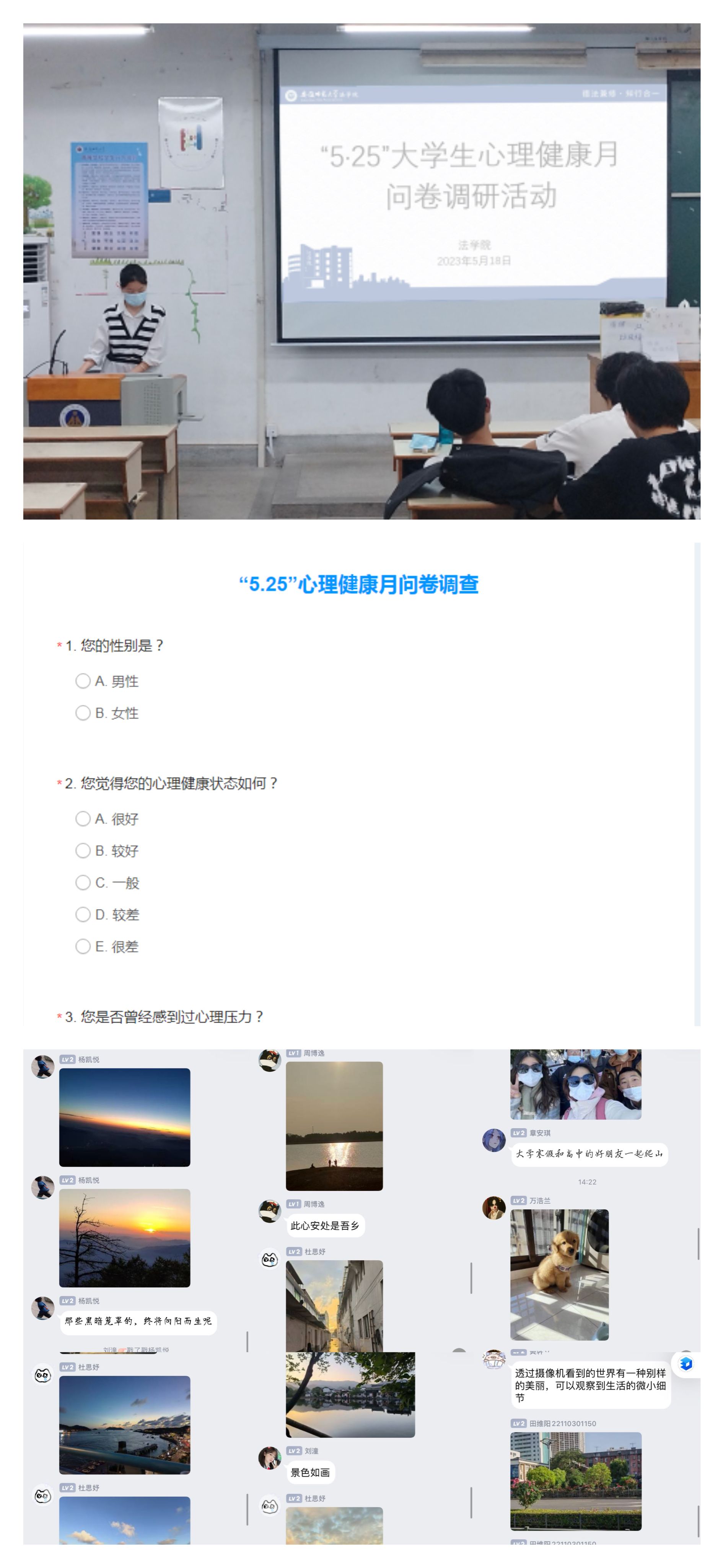 英国上市公司365组织心理调研排查活动。由22级法学心理健康委员围绕生心理健康素养、生命价值观、婚恋观、人际交往、职业规划等常见心理困惑精心设计调研问卷,21、22级员工参与;帮助员工正确认识自我、悦纳自我、超越自我;引导员工了解心理知识,疏通心理淤积。