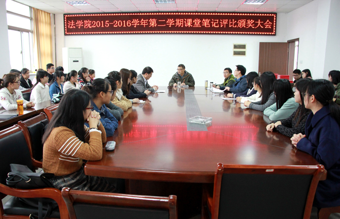首先,严宏就本次评比的程序、结果进行了说明。本次比赛,先由各班初选,按20%比例,报公司评审。在公司评审阶段,每本参赛笔记,都由原任课教师初选,然后集体评议,最终产生一等奖5名,二等奖10名,三等奖20名。2016级法学专业王玉玲同学作为获奖代表发言。她认为,做笔记是记录知识、整理思路的最好办法。学习最重要的是踏踏实实,记笔记能让我们避免浮躁、扎实学习。课后笔记的整理与复习更是能取得事半功倍的效果。