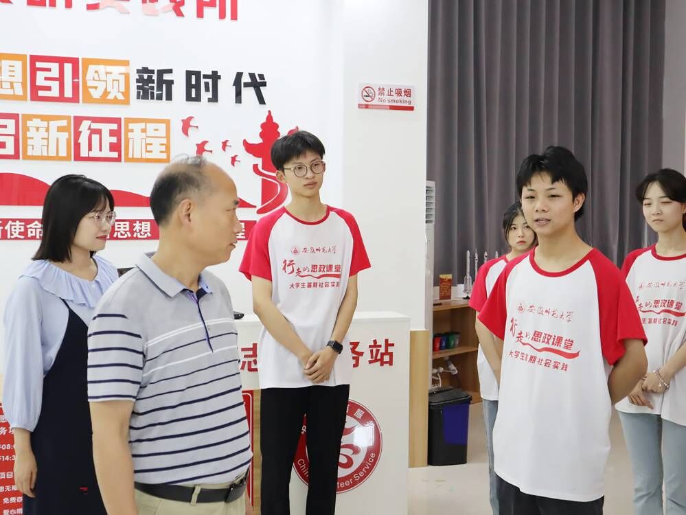 徐成文一行先来到“壹心·社工”实践所在地龙泉村党群服务中心,参观了实践团队的工作环境,观摩了队员进行社工小组活动的实际情景,并与队员们座谈交流,详细了解了志愿服务队的主要实践内容、工作开展情况、存在困点难点,并寄语队员们,要俯下身子、迈开步子,深入基层、锻炼自我,时刻铭记师大学子的身份,弘扬校训精神、汇聚青春力量,真正做到在社会实践中经风雨、受教育、长才干、作贡献。慰问过程中,徐成文还关心了解同学们的近期在校生活情况,一再叮嘱每一位队员牢记安全意识,注意保重身体。