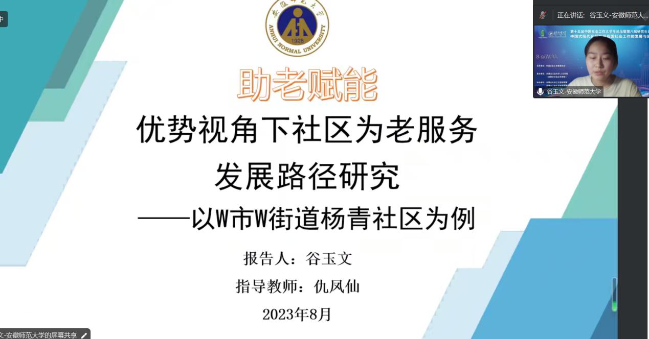 本届论坛的主题是“中国式现代化新阶段我国社会工作的发展与实践”,中国社会工作教育协会会长王思斌教授、副会长关信平教授、秘书长马凤芝教授及内蒙古自治区民政厅相关领导出席了论坛。论坛共设置一个主论坛、九个线下分论坛及四个线上分论坛,来自全国150多所高校、350余名同学参加,最终共有157篇本硕博作品分获一二三等奖。社会工作本科专业谷玉文同学的《助老赋能:优势视角下社区为老服务发展路径研究》(指导老师:仇凤仙)论文荣获本科组三等奖。