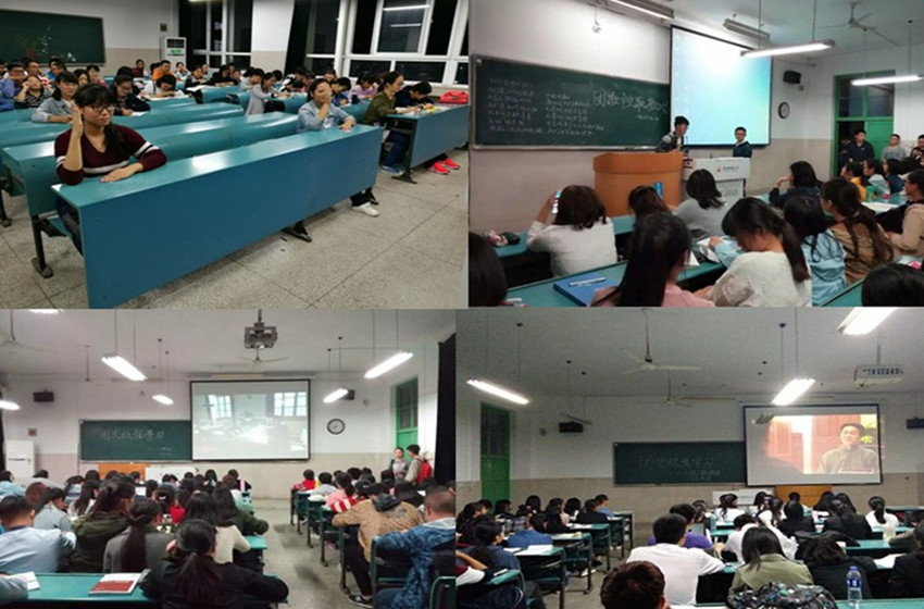 各班级班委组织同学们在教室观看影片《五星红旗迎风飘扬》进行团史学习,使同学们更好的了解中国共青团。通过影片,同学们追溯共青团的历史,回顾共青团这些年的风雨历程,对战争中不畏强敌敢于抗争的革命先烈感到深深敬佩。同学们认真学习唱团歌,在富有历史使命感的歌词中更加明确了自己的责任。法学一班举办了团史知识竞赛,同学们热情高涨进行抢答,在竞赛中了解党团历史,感悟党团精神。