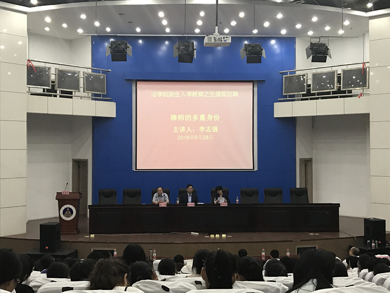 9月28日下午,一级律师、国际律师协会理事、英国皇家仲裁协会会员、上海金茂凯德律师事务所主任李志强在敬文报告厅开讲,讲座主题为《律师的多重人生》。公司法学专业教师、2016级法学专业新生以及芜湖部分律师积极参与此次讲座。