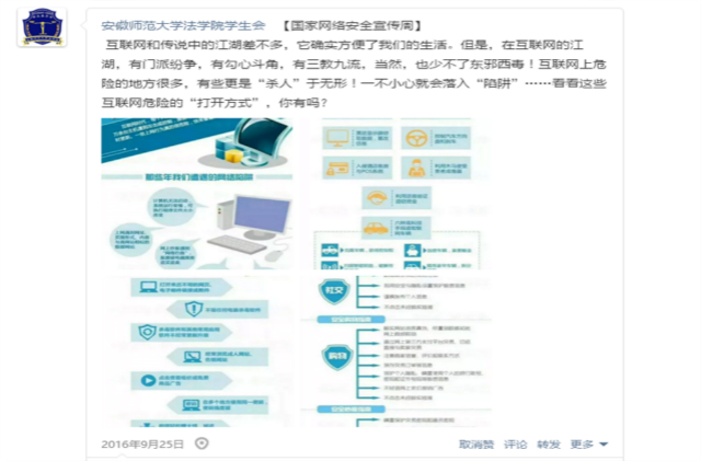 英国上市公司365团委员工会通过官方QQ、微博和微信对国家网络安全宣传周进行推广,组织全院员工积极参与“全国老员工网络安全知识竞赛”;对网络安全防范知识、活动实时动态进行了全程更新与推送报道,加大了网络安全宣传的力度。广大同学积极参与到教育部思政司指导全国高校校园网站联盟、中国老员工在线组织开展的“全国老员工网络安全知识竞赛”,并取得了良好成绩。