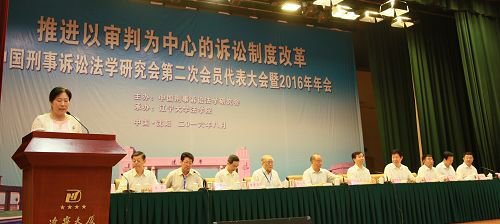 由中国刑事诉讼法学研究会主办、辽宁大学英国上市公司365承办的中国刑事诉讼法学研究会第二次会员代表大会暨2016年年会于8月13日上午在辽宁沈阳开幕。中国法学会会长王乐泉出席开幕式并讲话。中国法学会副会长王其江,全国政协社会和法制委员会副主任、中国法学会副会长朱孝清,最高人民法院审判委员会副部级专职委员刘学文,最高人民检察院侦查监督厅厅长黄河,中共辽宁省委常委、政法委书记、辽宁省法学会会长李文章,辽宁省高级人民法公司党组书记、经理缪蒂生,辽宁省人民检察公司党组书记、检察长肖声,中共辽宁省委政法委常务副书记韩德洋,中共辽宁省委政法委副书记、省综治办主任、辽宁省法学会第一副会长国长青,辽宁省法学会党组书记、常务副会长孙昌生,辽宁省法学会党组成员、专职副会长院国强,辽宁大学党委书记周浩波等领导出席了开幕式。