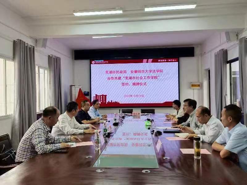 古大海局长在致辞中表示,芜湖市民政局本着在服务中建设、在建设中发展的社会工作人才队伍建设思路,聚焦基层社会治理、助力脱贫攻坚和乡村振兴,努力探索具有芜湖特色的社会工作发展模式,此次共建芜湖市社会工作公司进一步强化人民城市“合伙人共建人民城市”力度,汇聚师大专业团队强力,齐心协力为芜湖市省域副中心建设贡献力量!