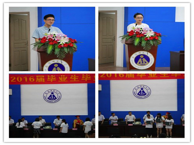 典礼在庄严嘹亮的国歌声中拉开了帷幕。副经理周俊强教授宣读了硕士学位和学士学位授予决定。党委副书记屈光峰宣读了最受2016届本科毕业生欢迎的老师名单,毕业生代表为老师们献花致谢。