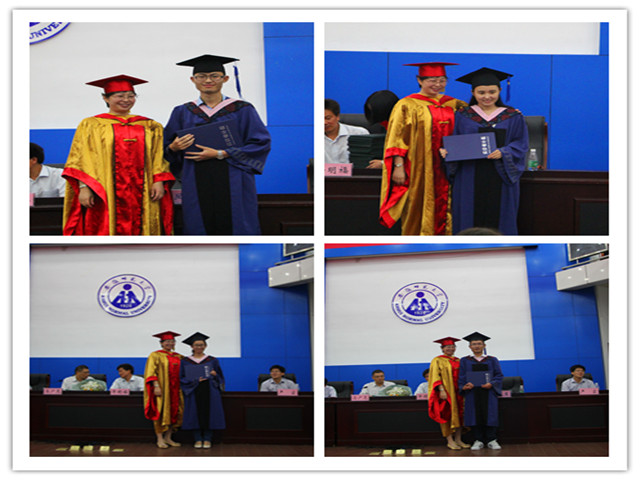 典礼最后一项议程,由经理彭凤莲教授为硕士毕业生扶正流苏,一一颁发学位证书,由公司党委常委、副董事长毕明福和公司党政领导为每位本科毕业生颁发了学位证书,并合影留念。