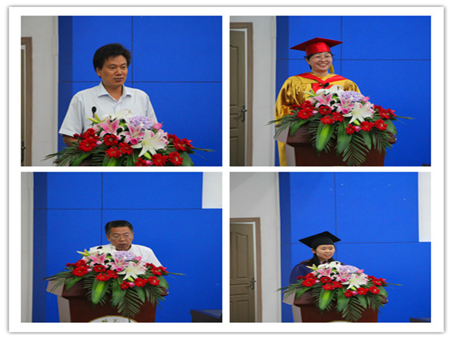 2013级卓越司法班徐俊作为低年级员工代表致欢送词,感谢学长学姐在生活、学习和员工工作上的帮助与关心,祝福学长学姐勇往直前,追求平凡中的卓越。2012级行政管理专业本科毕业生代表王娇、2013级民商法学硕士毕业生代表田青代表毕业生致答谢词,表达了毕业生对母校以及老师们的拳拳感激之情和浓浓不舍之意。朱启友老师作为教师代表用诙谐幽默、紧跟时代步伐、深受师生共鸣的语句,从回忆、感动和期望三个方面向毕业生们表达了殷切期望,他希望学子们心系母校,为母校增光添彩,每位学子能够胸怀梦想,奋斗不止,不断反思自己,不断超越自己,自觉成为社会主义法治的忠实崇尚者、自觉遵守者、坚定捍卫者。