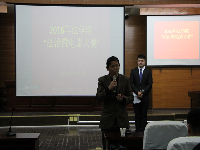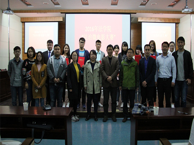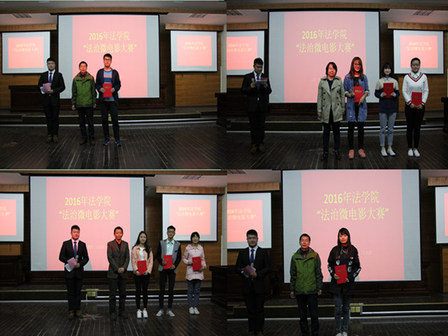 待七部微电影作品放映完毕后,李路根对各剧组作品作出精彩细致的点评:他首先对各位同学精心制作的努力作出肯定,高度赞扬了法治微电影这种新型普法宣传模式,同学们通过拍摄反映青年老员工热点问题的作品,对有关法律问题准确阐释,达到了良好的普法宣传效果,作品的艺术表现力和感染力也十分丰富。他同时表示期待以后会有更好的作品,将这种新型普法宣传模式传承下去,使校园普法达到新高度。最终,15卓越司法班《下落的玻璃杯》凭借精良的制作与引人入胜的剧情荣获本届法治微电影大赛一等奖,14法学二班《小炮儿》凭借网络投票的超高票数荣获人气奖,其余作品分别获得二等奖与三等奖。