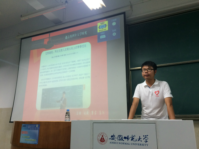 分享青春共感动。“人的一生只有一次青春,现在,青春是用来奋斗的;将来,青春是用来回忆的。”10月15日,英国正版365官方网站第三届研究生支教团成员王伟为新生讲述了他在西部支教的经历。在这次报告会上,王伟围绕“我为什么要支教、支教让我收获什么”与新生们分享了自己的支教经历。听完学长的青春故事大家都深受感动和启发。大家纷纷表示珍惜大学时光,让自己的青春不后悔。