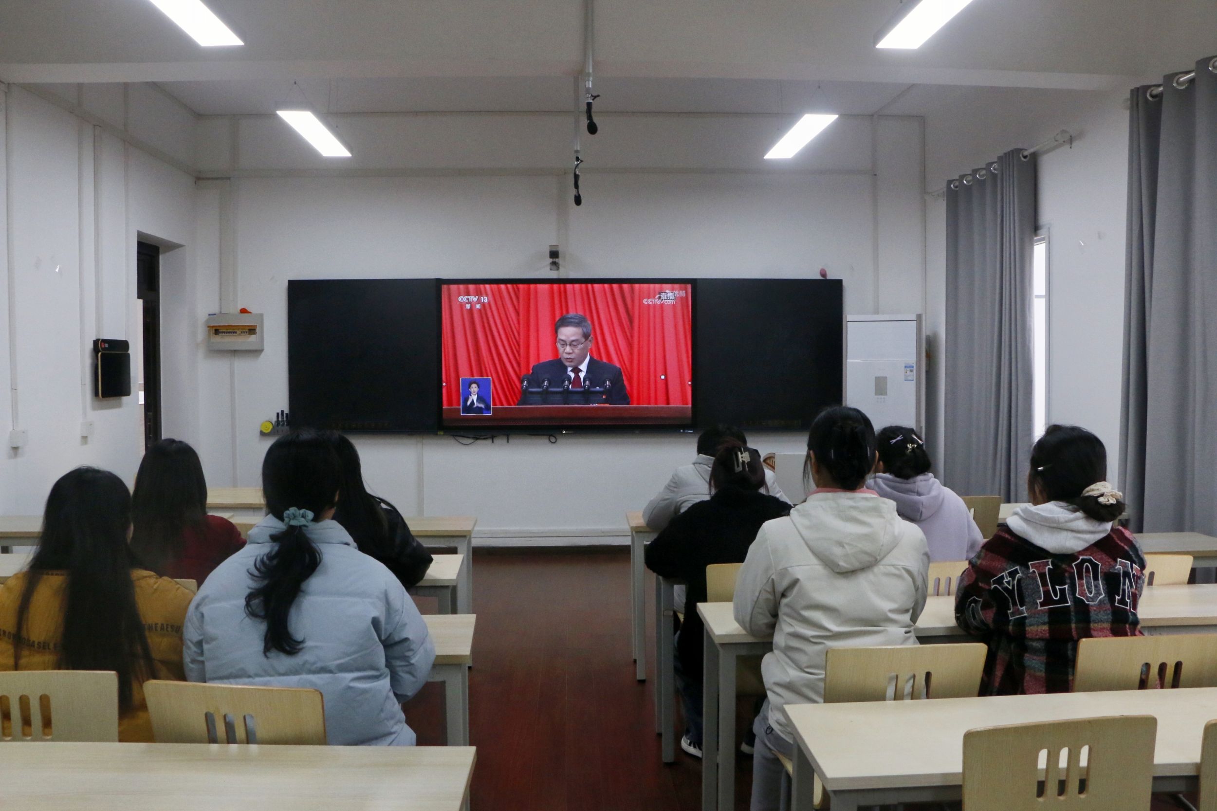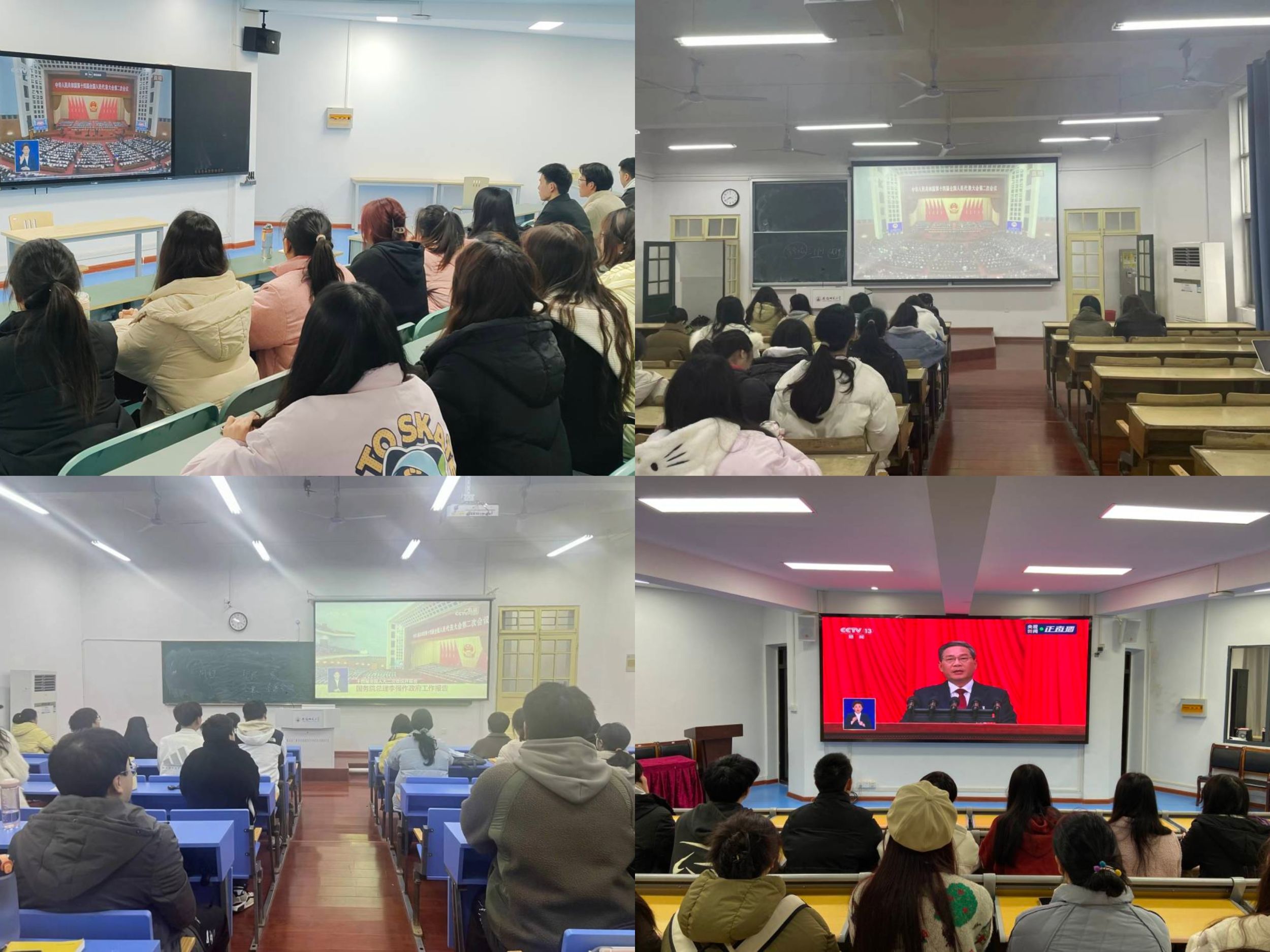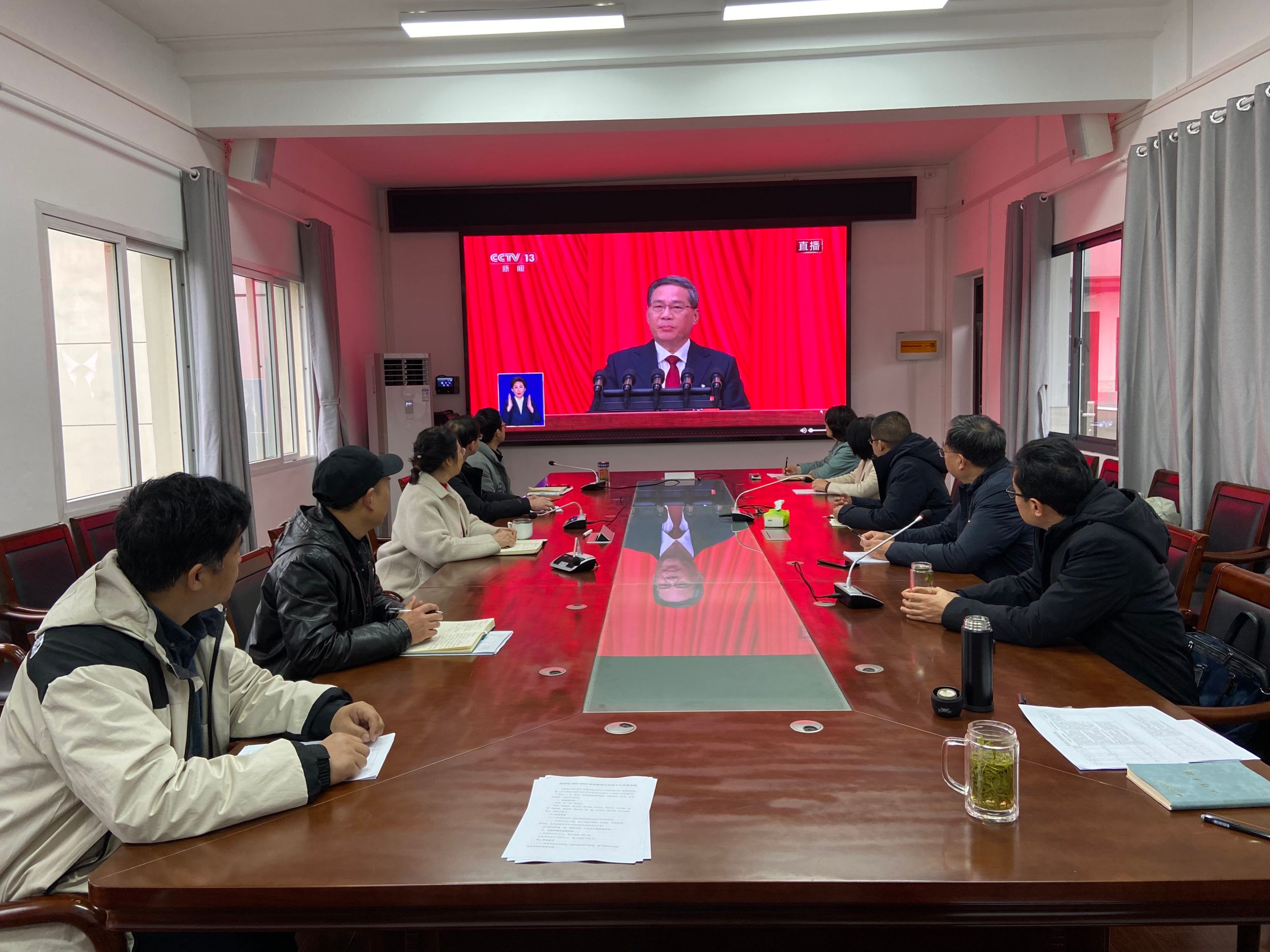 公司党政领导、教师代表在公司五楼会议室集中收看开幕式直播实况,听取国务院总理李强所作的《政府工作报告》,学习领会大会精神。各教师、员工党支部在支部党员活动室观看大会直播。在辅导员老师的组织下,各年级员工充分利用互联网和新媒体平台,通过观看直播、学习研讨等形式,关注“两会”热点问题,同学们就乡村振兴、环境保护、社会保障、科技创新、教育改革等问题进行了讨论。