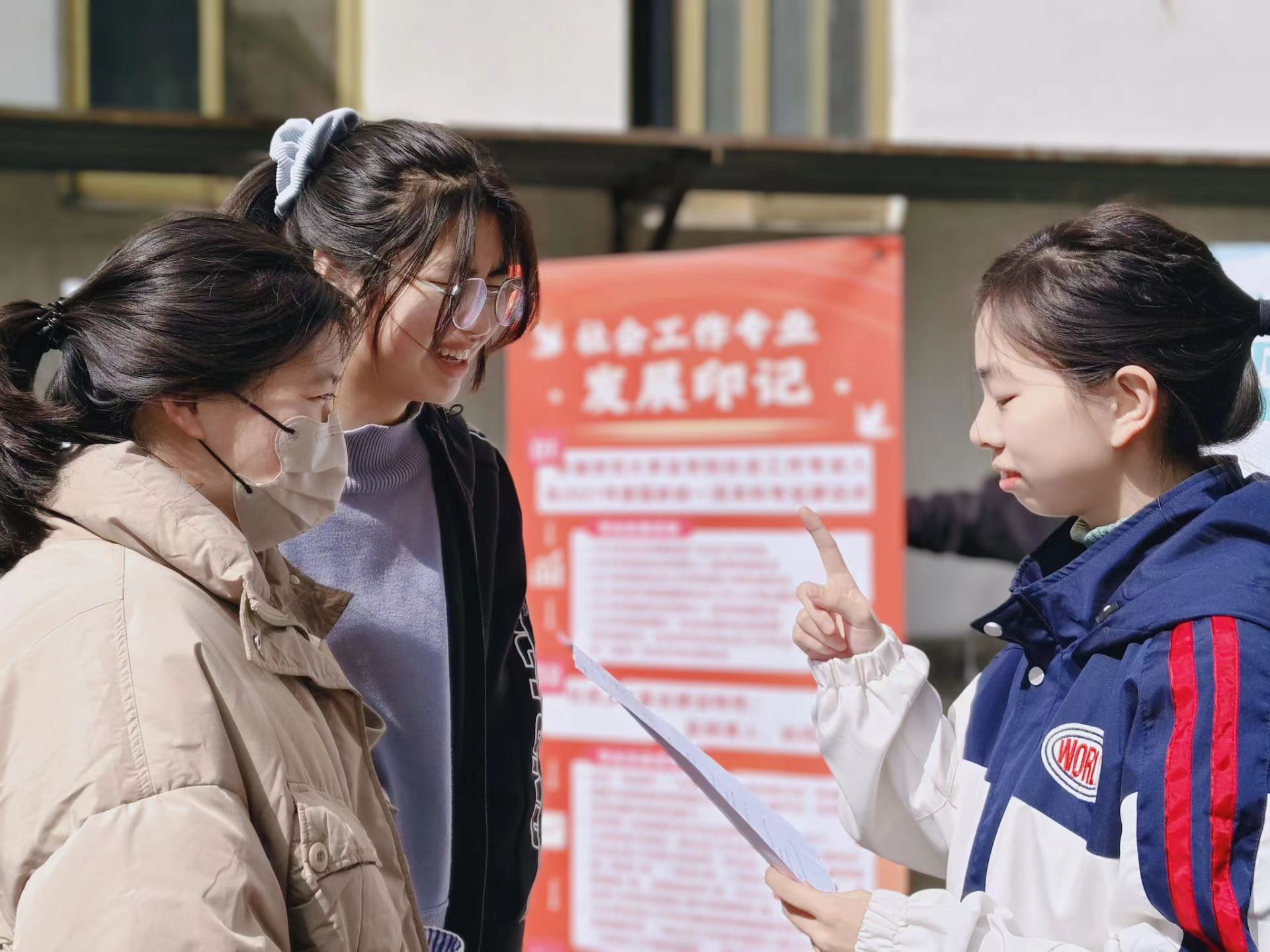 众志成城,展现社工风采。3月19日中午,社会工作专业员工和协会成员在赭山和天门山校区联合举办了国际社工日校园展,详细展示了国际社工日的历史背景、主题宗旨,以及公司社会工作专业的发展历程。此外,活动现场设有多种互动环节,包括社工知识竞赛、“我对社工说”主题寄语等活动,有效地传播了社会工作理念,激发了员工兴趣,提升了专业在校园的影响力。