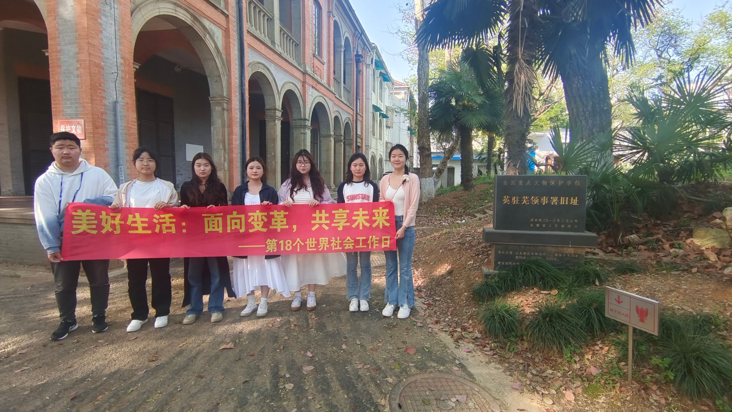 历史回响,探索社工价值。在国际社工日的主题下,21级社会工作专业员工参观了芜湖市的文物保护单位,包括英驻芜领事署和官邸旧址、总税务公所。员工们不仅亲眼见到了中国近代史的缩影,也感受到了文化传承和变革的重要性。通过了解这些建筑背后的故事,不仅丰富了员工们对国家历史文化的认知,还强化了他们将社会工作专业理念应用于文化遗产保护的意识,激发了他们对未来社会工作实践的思考。