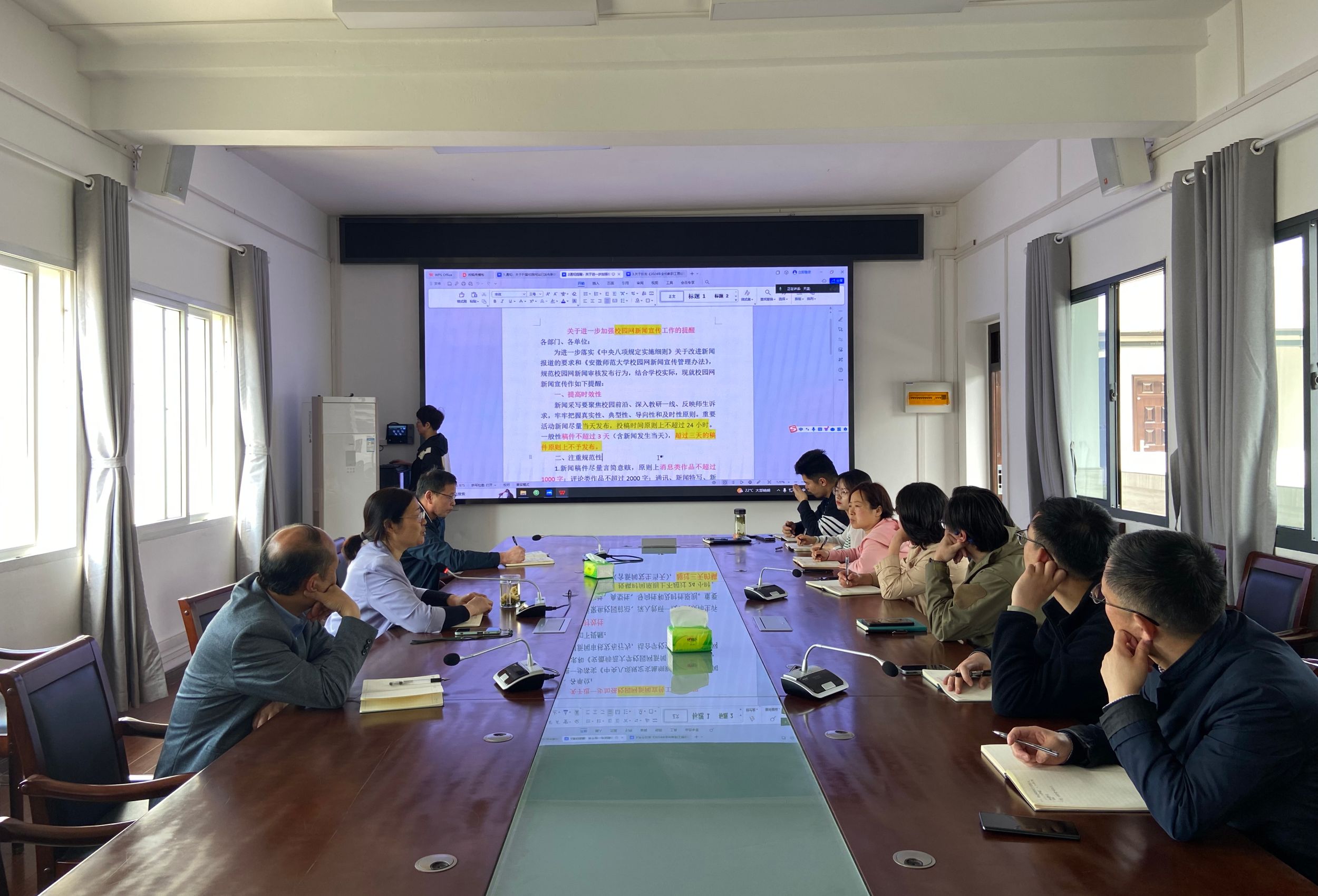 会上,大家进行了《关于进一步加强校园网新闻宣传工作的提醒》内容学习。针对新闻宣传的时效性、规范性、程序性,赵红作了重点解读和提醒,重要活动新闻投稿要把握不超24小时原则,新闻标题要高度概括新闻事实,职务称谓要规范表述,一般性会议新闻不要上传个人特写照片等。