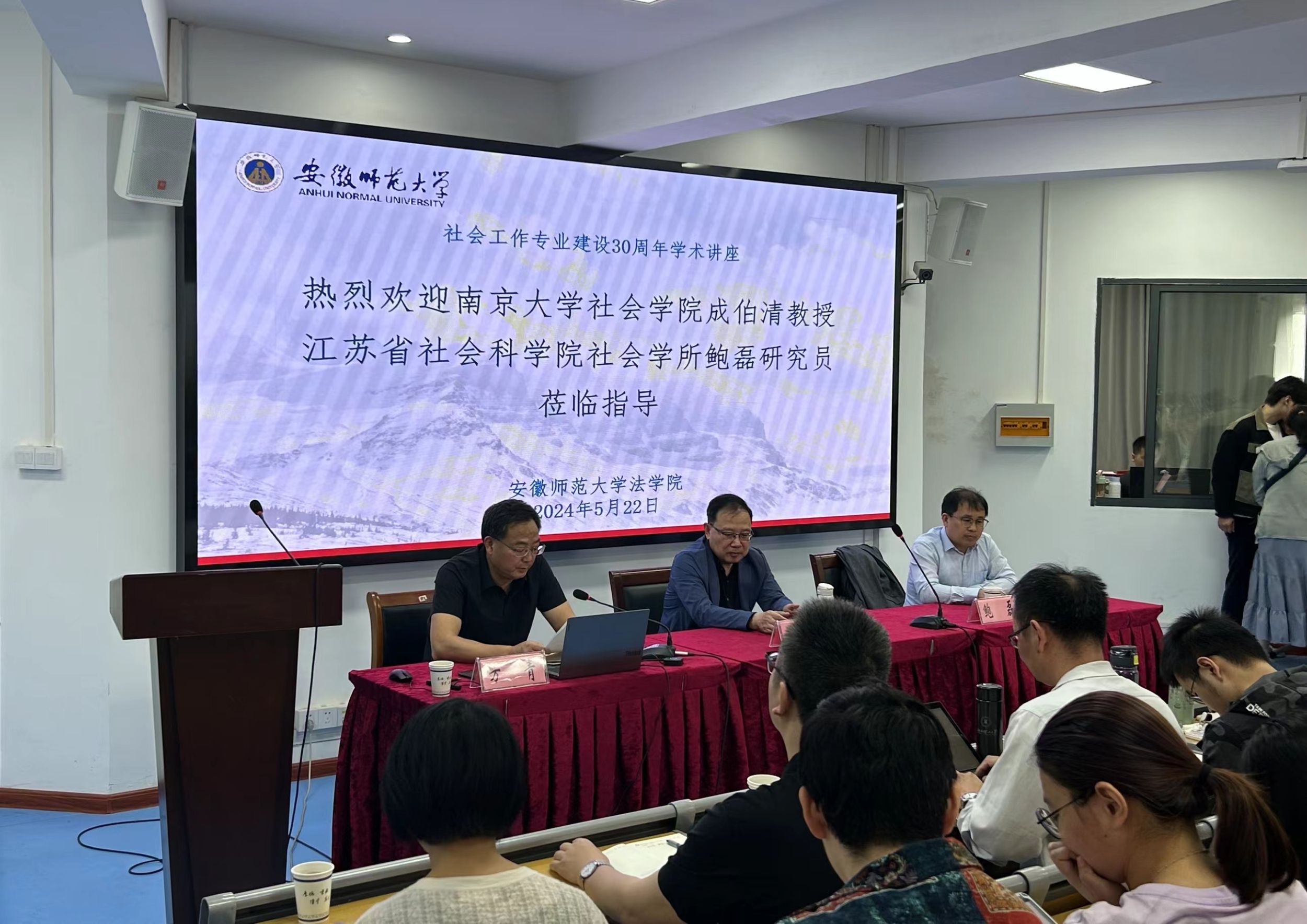本网讯 2024年5月22日,英国正版365官方网站“社会工作专业建设30周年”学术讲座于赭山校区英国上市公司365214报告厅顺利举行。教育部国家级人才称号、特聘教授、中国社会学会副会长、南京大学博士生导师成伯清教授与江苏省社会科公司社会学研究所副所长鲍磊研究员莅临指导,成伯清教授应邀作了题为《社会学理论:当代挑战与未来取向》的线下讲座,英国上市公司365教授、博士生导师方青教授主持,社会学专业百余名师生参加。