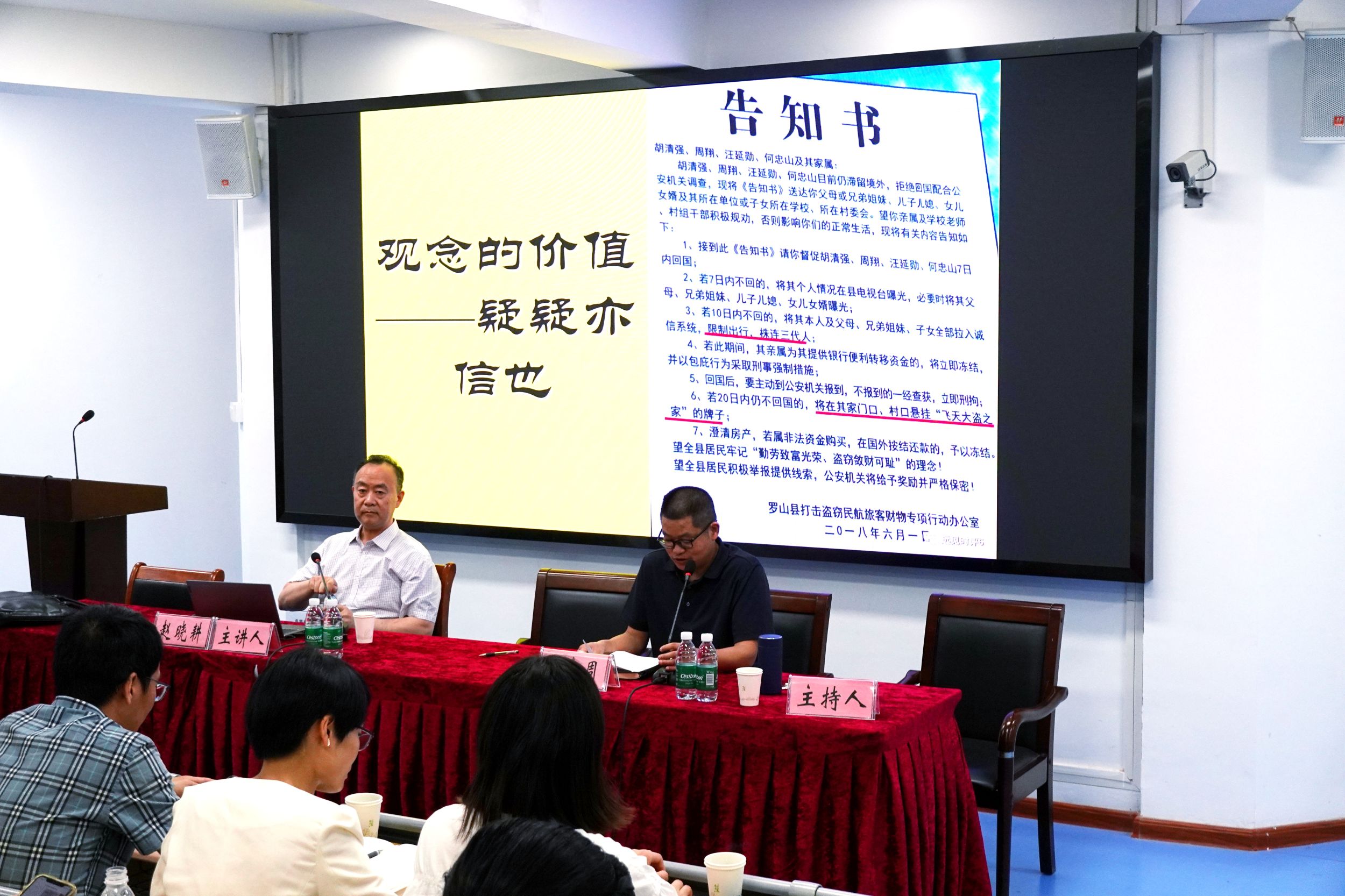 讲座伊始,赵晓耕教授提出“观念的价值—疑疑亦信也”,并通过漫画的形式生动地导入讲座内容。赵老师以幽默风趣的语言与老师、同学们互动,并逐步介绍传统法中“平等”“德治”的内在精神。