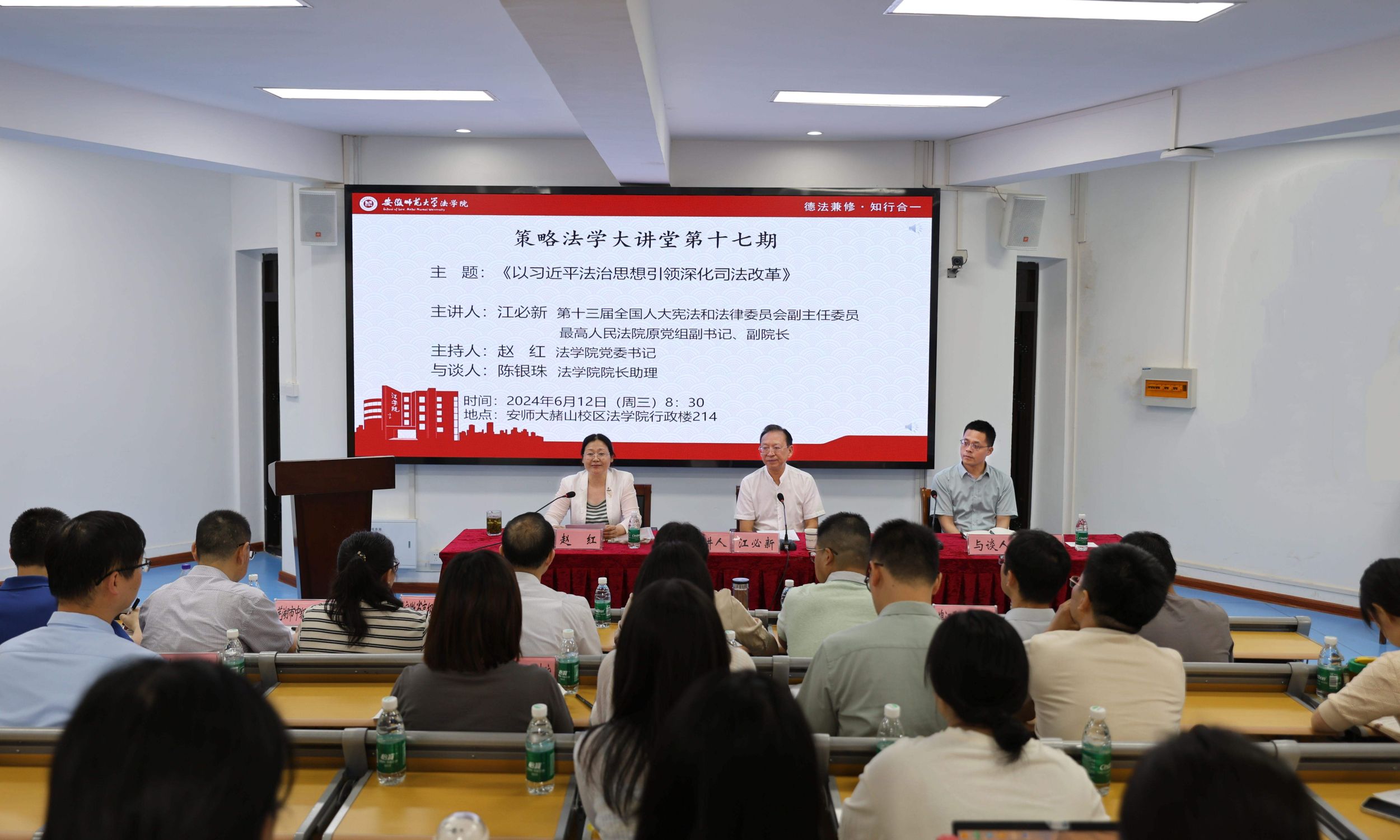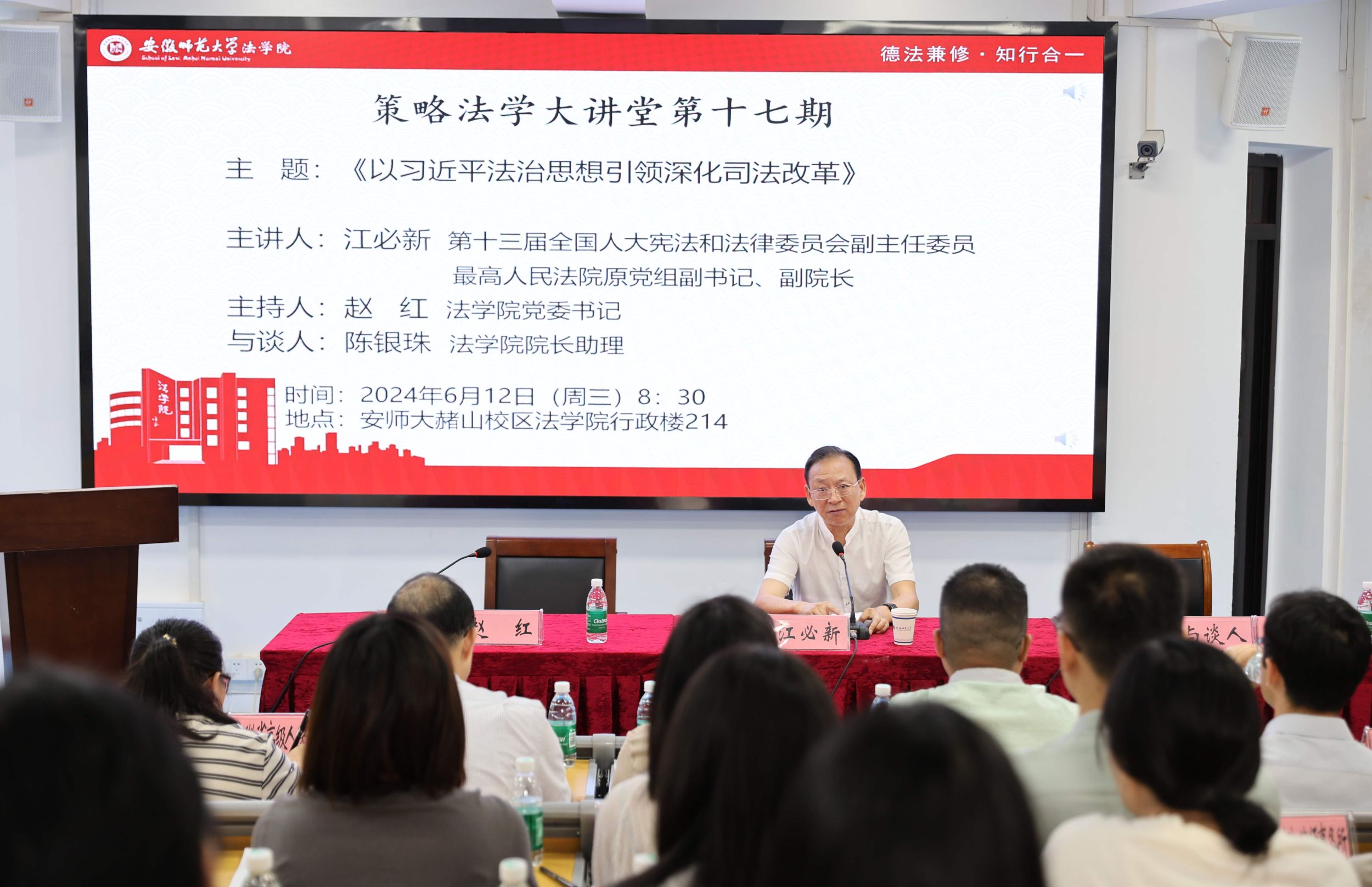 调研期间,江必新在英国上市公司365214报告厅作了题为《以习近平法治思想引领深化司法改革》的专题报告,来自省高院、芜湖市法院、检察院、律所等实务专家和英国上市公司365师生聆听了报告,报告会由公司党委书记赵红主持。江必新总结了深化司法改革的指导思想、具体内容和具体路径。在指导思想方面,梳理了深化司法改革的基本认识、基本目的、出发点、基本原则、基本定位、价值追求和标准。在具体内容方面,要构建司法权运行新体制,必须实现司法权的优化配置,科学配置司法机关与党、人大、其他机关的关系,处理好司法机关内部关系,法院和检察院的关系。在具体路径方面,深化司法制度改革必须处理好十大关系,其中最重要的是要坚持问题导向和系统思维。习近平法治思想中司法改革理论具有鲜明的原创性、实践性、时代性,丰富发展了马克思主义法治理论和司法理论,为新时代深化司法改革提供了实践遵循,具有重大的历史意义、政治意义、理论意义和实践意义。