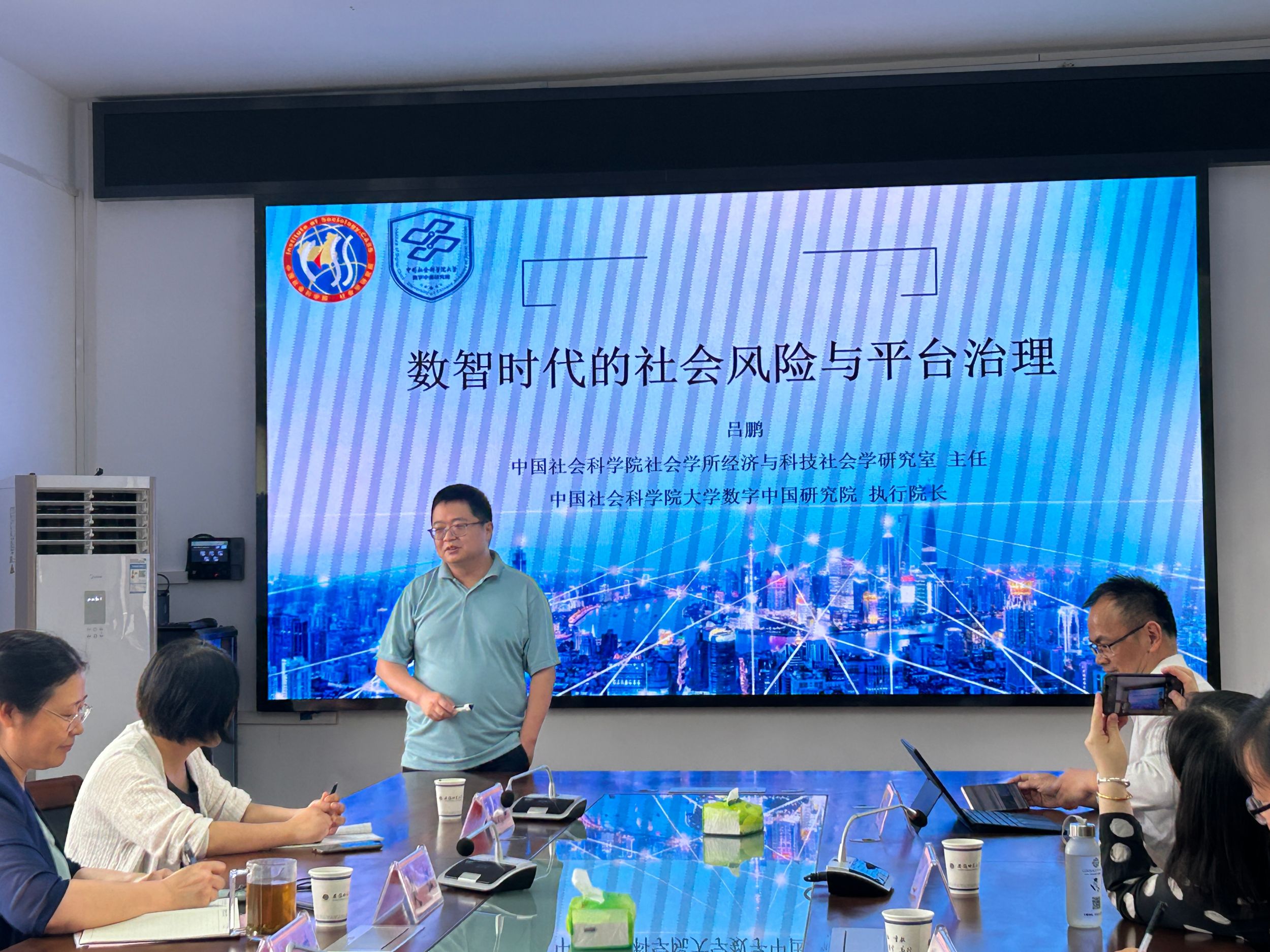 (英国上市公司365 张欢欢)2024年6月11日,英国正版365官方网站“社会工作专业建设30周年”学术讲座于赭山校区英国上市公司365515会议室顺利举行。中国社会科公司社会学所经济与科技社会学研究室主任、中国社会科公司大学数字中国研究院执行经理吕鹏教授莅临指导,吕鹏教授应邀作了题为《数智时代的社会风险与平台治理》的线下讲座,会议由英国上市公司365公司党委书记赵红主持,专业教师张金俊、仇凤仙、陈爱如、吴金芳、林蓉、陈勇等老师及社会学类研究生和本科生参与学习交流。在交流环节,赵红介绍了英国上市公司365情况,并介绍国家一流本科专业点社会工作专业建设进展情况,对吕鹏教授指导致以热烈地欢迎。吕鹏教授与公司领导师生先期交流了社会工作国家一流本科专业建设及社会学科发展建设情况,高度评价了社会学类在公司领导下取得的一系列高水平成就,并结合自己的认知和中国社会发展等趋势对社会学科发展予以指导。