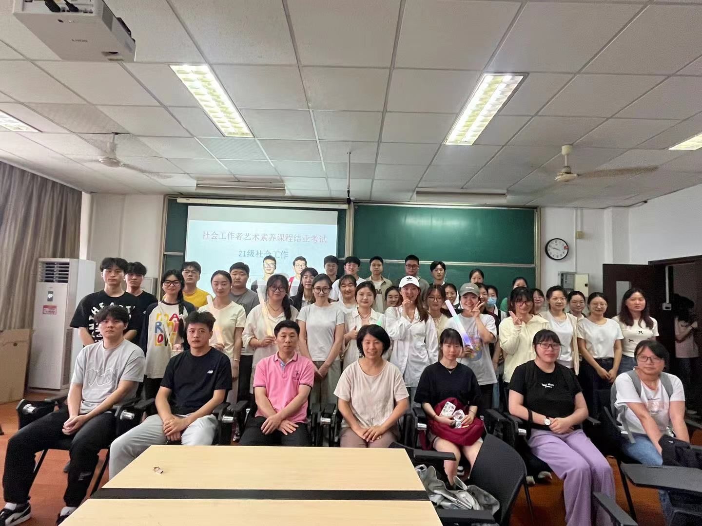 (2021级社会工作 李迎春)6月27日上午,2021级社会工作专业在社工实验室进行了《社会工作者艺术素养》课程期末考核汇报演出。社会工作专业教师仇凤仙、刘玲、蔡小冬受邀出席并担任课程考核评委。