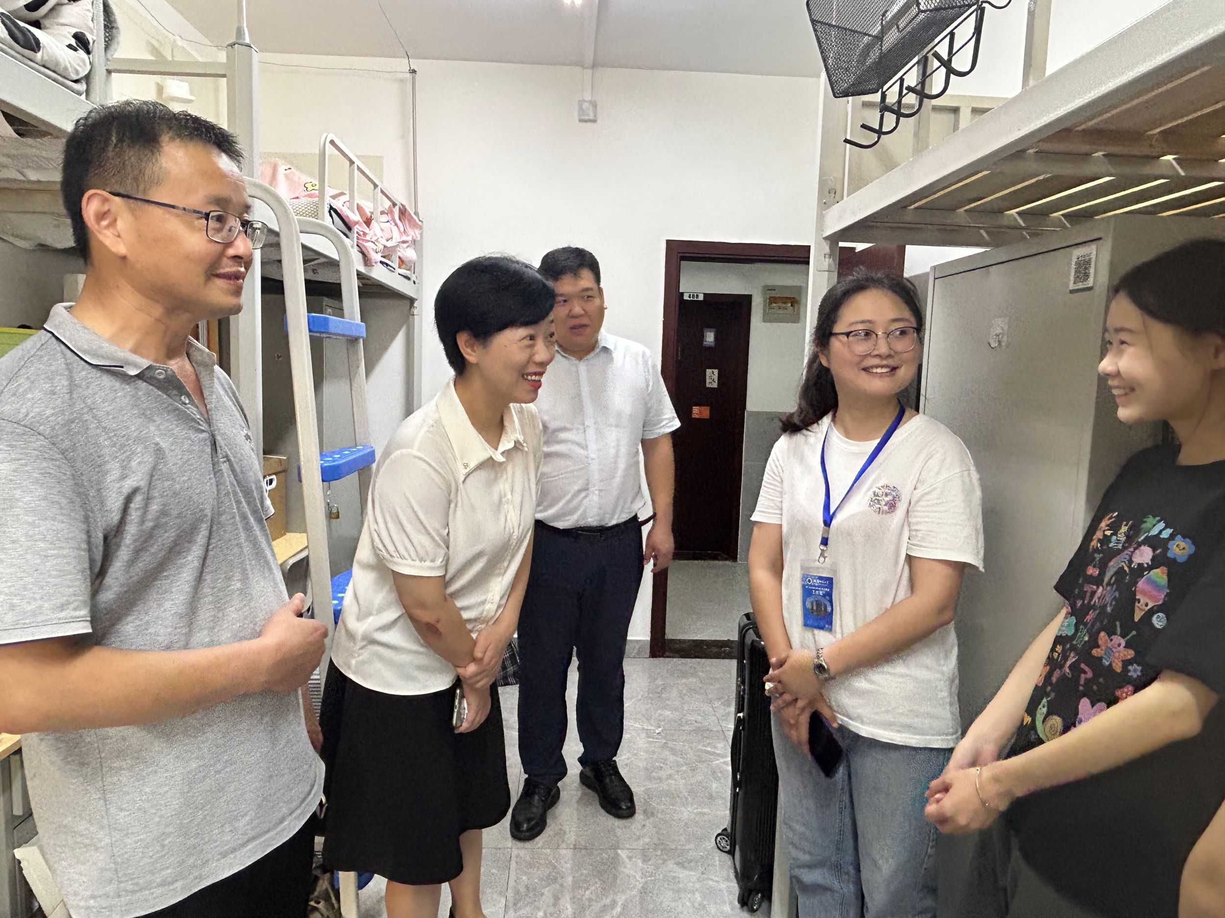 深入宿舍,关切员工,解决同学们实际问题。搬迁过程中,员工处副处长宋静以及公司领导班子成员赵红、张玉新多次走访员工宿舍,关切询问同学们的入住情况与需求反馈,并表示将继续关注同学们在新校区的学习与生活状况,确保大家能够安心学习、健康成长。