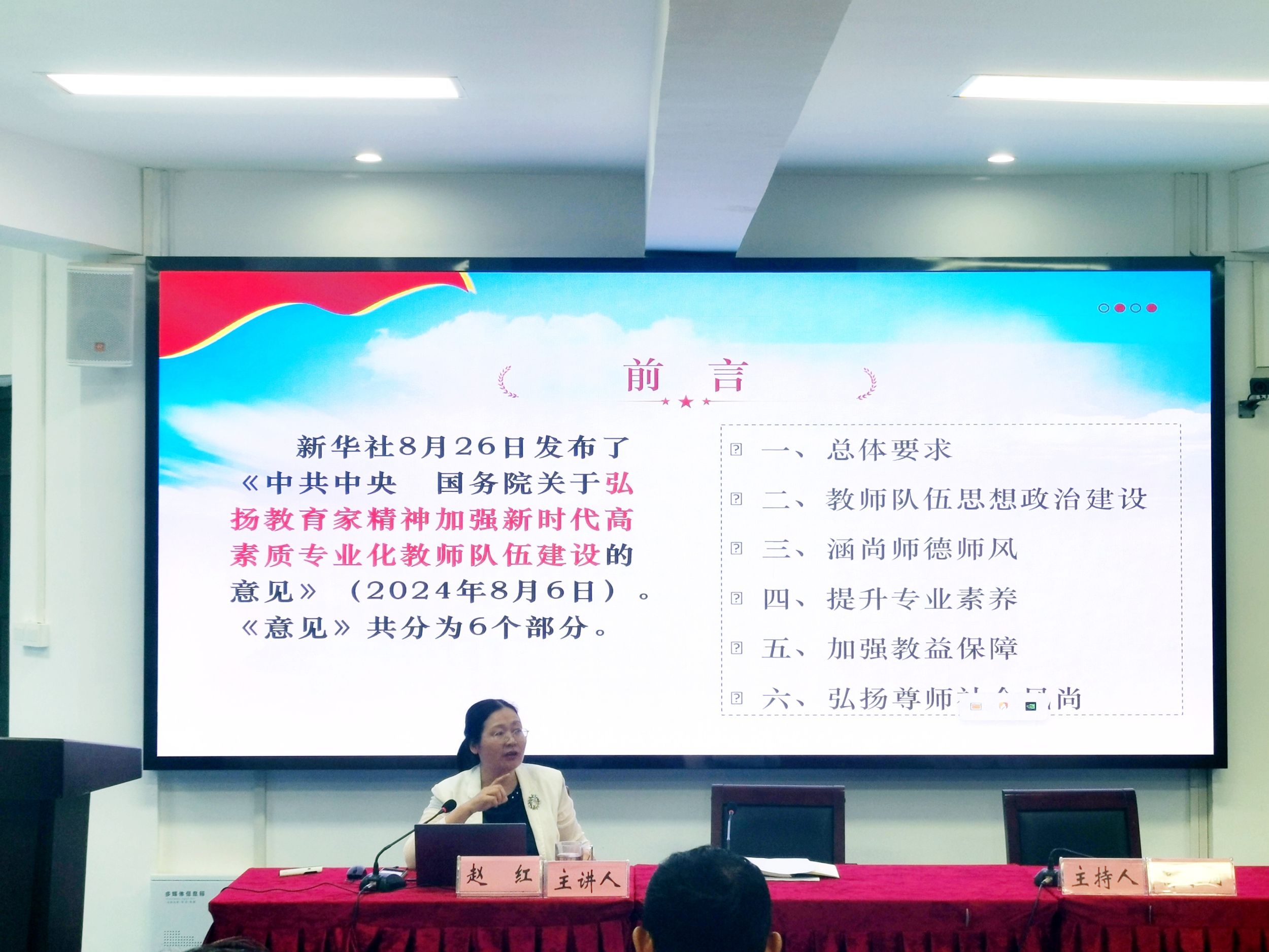 9月4日下午,公司召开教职工理论学习大会,专题学习党的二十届三中全会精神和教育家精神。会议由公司党委书记赵红主持,全体教职工参加。