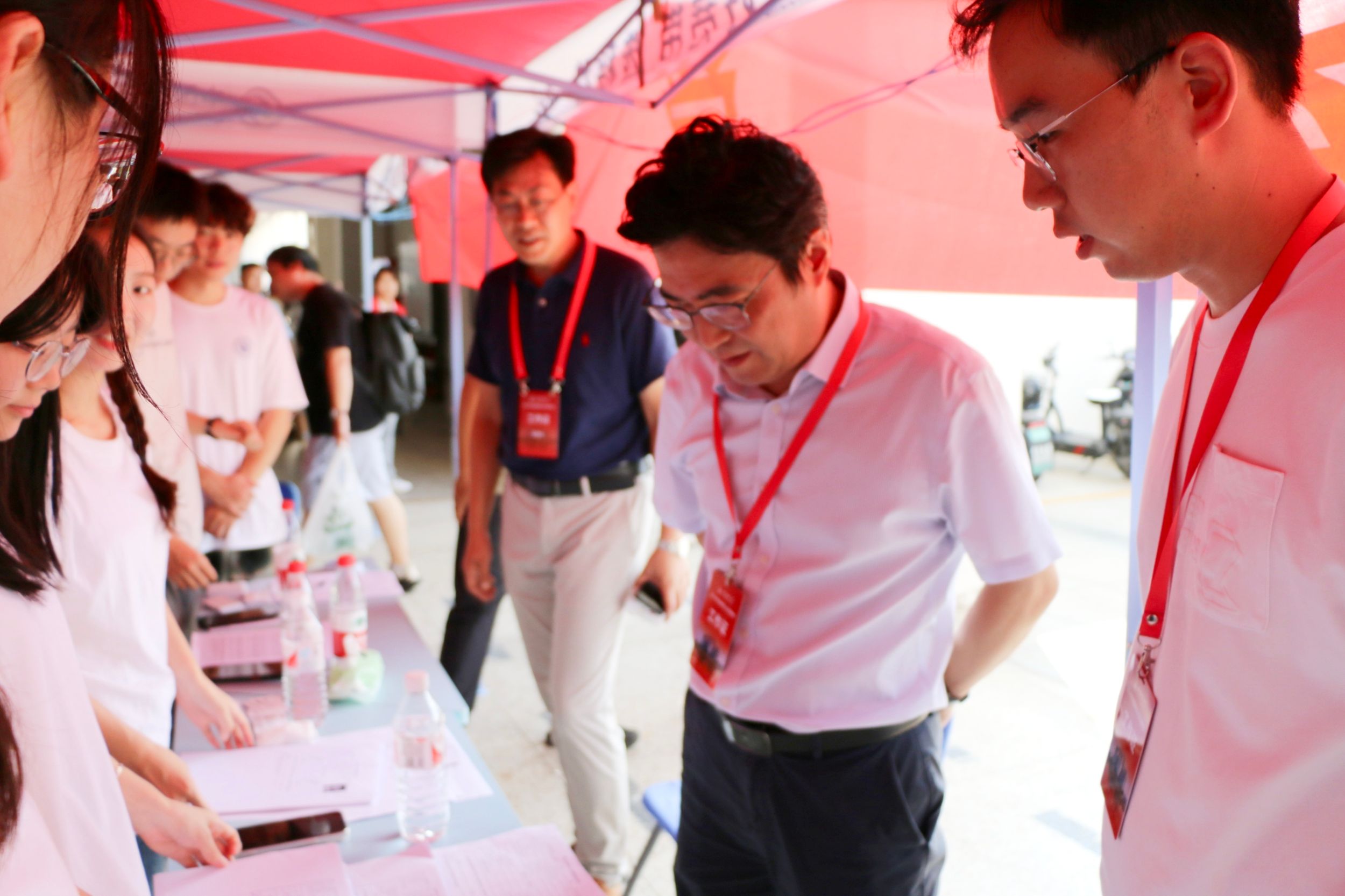 报到现场,多位校领导亲临慰问,关心询问公司新生报到情况,同2024级研究生亲切交谈送上诚挚的祝福,向工作在迎新一线的工作人员和志愿者表示慰问。