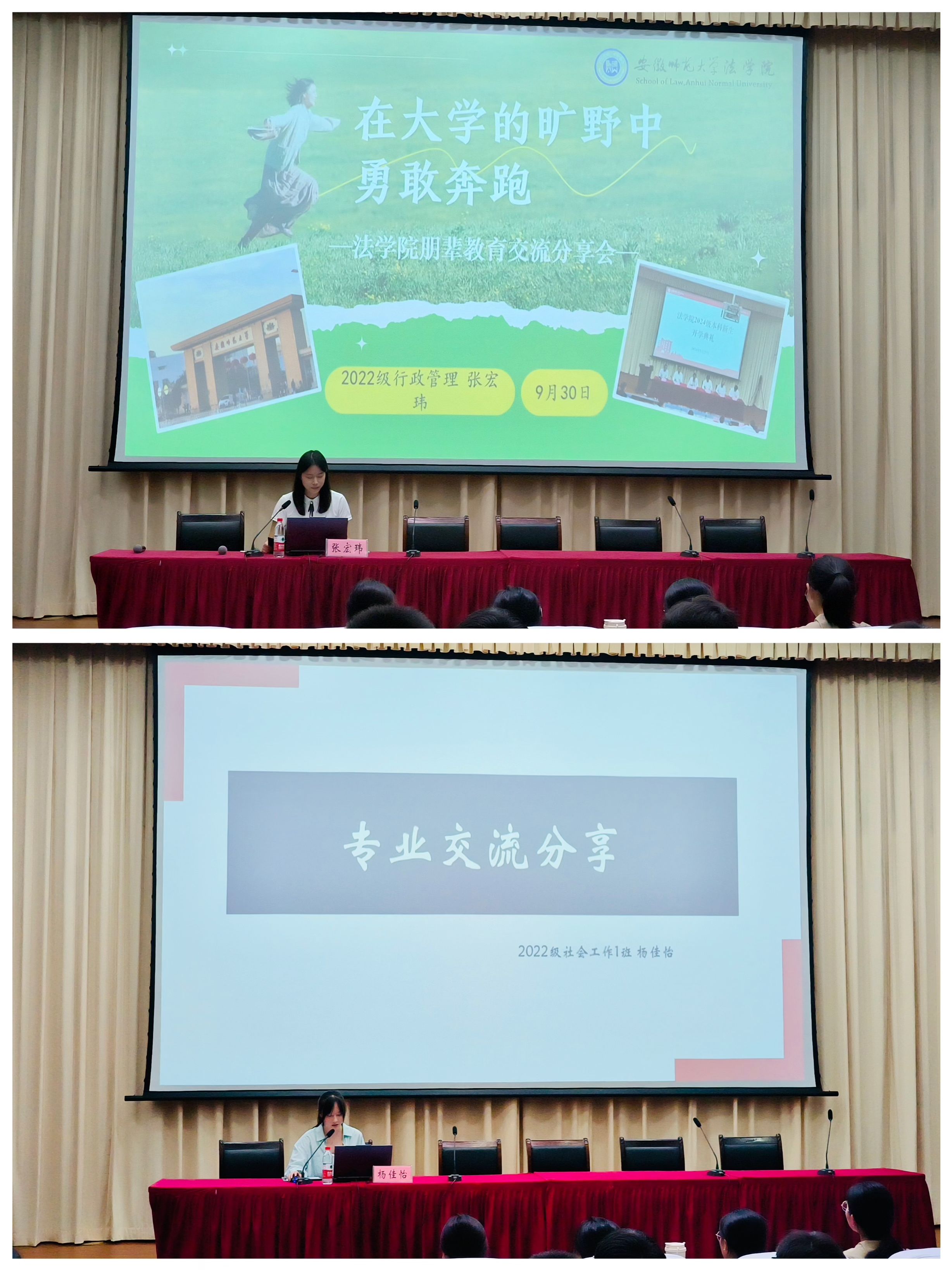会议伊始,首先,刘沐景带领员工回顾了国庆节的由来和意义,强调了作为新时代老员工,应该与祖国同呼吸、共命运,积极投身到祖国的建设和发展中去。随后,来自2022级行政管理专业张宏玮、 2022级社会工作专业杨佳怡以学习和成长为主题,分享了她们在专业学习、社团活动、实习实践等方面宝贵的经验。张宏玮强调大学要有规划,不迷茫,勇奔跑。 她鼓励新生在大学里要勇敢探索不设限,积极参加竞赛活动和社会实践。杨佳怡强调了时间安排和综测的重要性,并向新生介绍知网阅读途径,希望各位同学在大学也不松懈学习,为未来做好准备。最后,李冉冉对本次分享会进行总结。她鼓励新生们勇于担当,敢于创新。同时,她叮嘱员工在国庆假期期间注意安全,合理安排时间,享受假期的同时也要为接下来的学习生活做好准备。