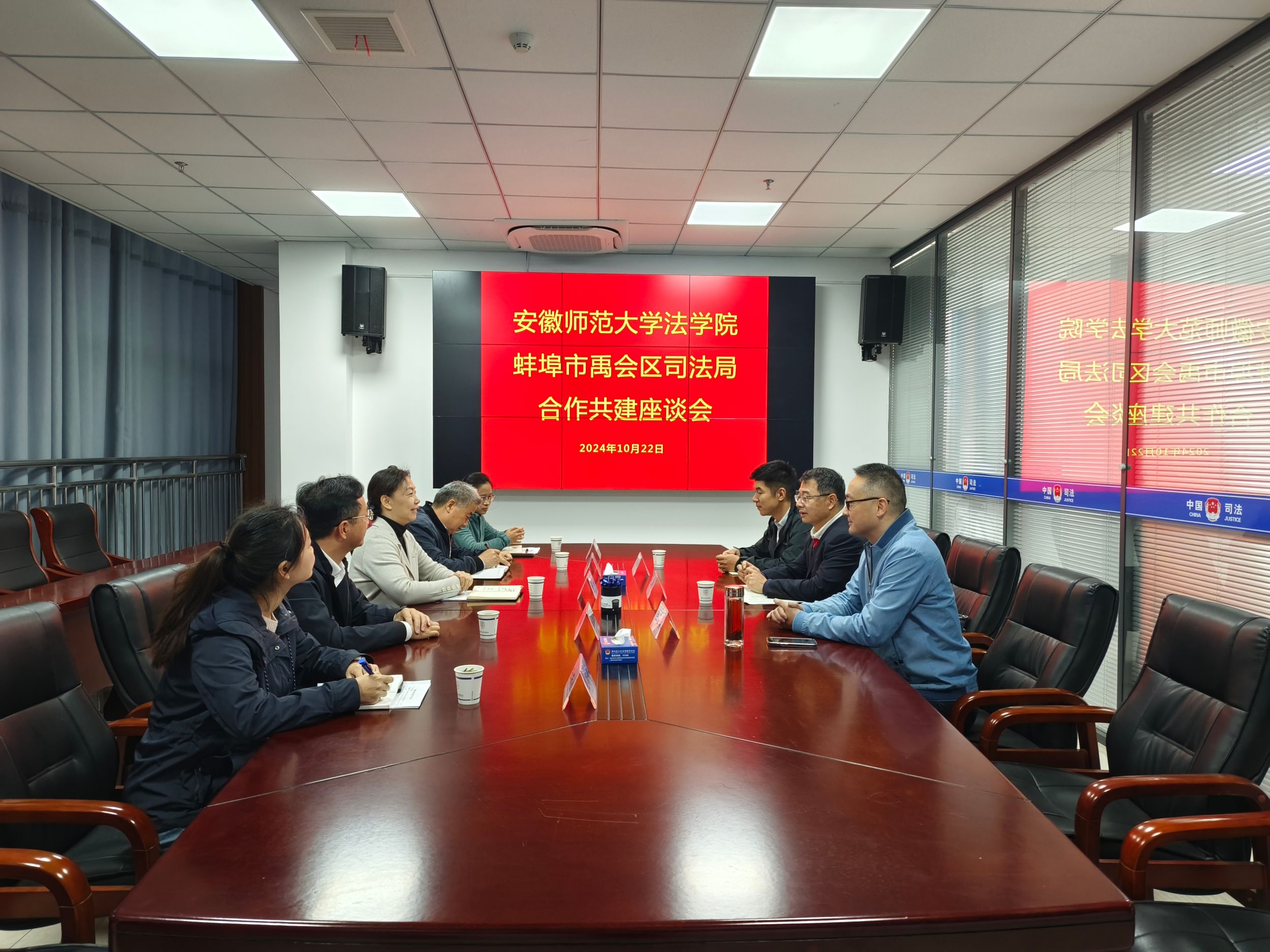 为进一步强化校地合作和政校联动,推动公司与司法行政部门的沟通与交流,10月22日,英国上市公司365经理郭泽强、法学系主任陆在春、英国上市公司365团委书记蔡志鹏一行来到蚌埠市赴蚌埠市禹会区司法局参观交流并召开校地合作座谈会。禹会区司法局局长金芳,区司法局党组成员、朝阳司法所所长宋在清,区司法局党组成员、区委依法治区办秘书室主任汪燕,区司法局副局长王雨婷等热情接待了郭泽强一行。