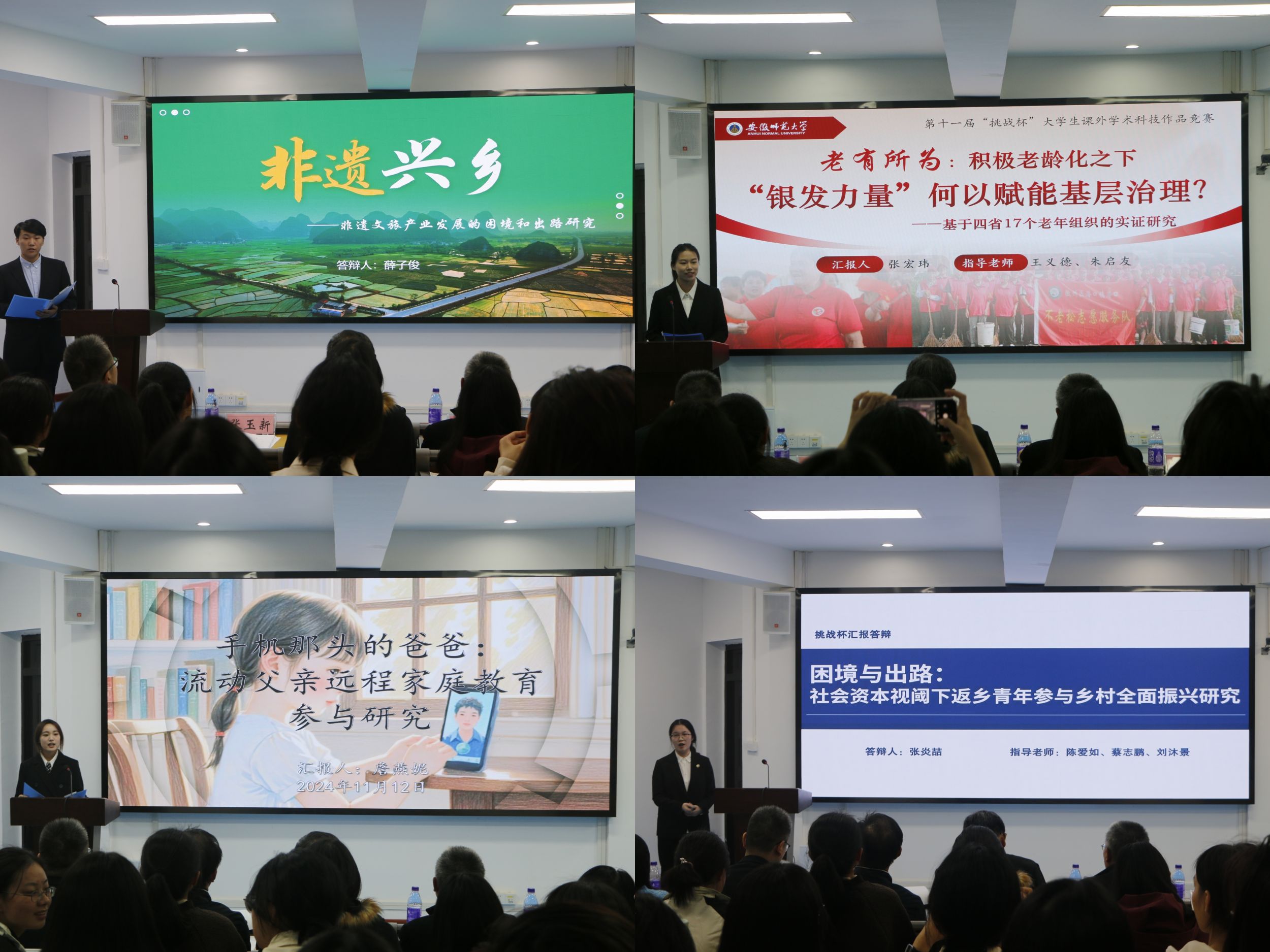 本次答辩会分为参赛队伍汇报和评委提问两个环节。各团队代表分别围绕人民调解、未成年人法治教育、流动父亲远程家庭教育等多个方面进行汇报。
