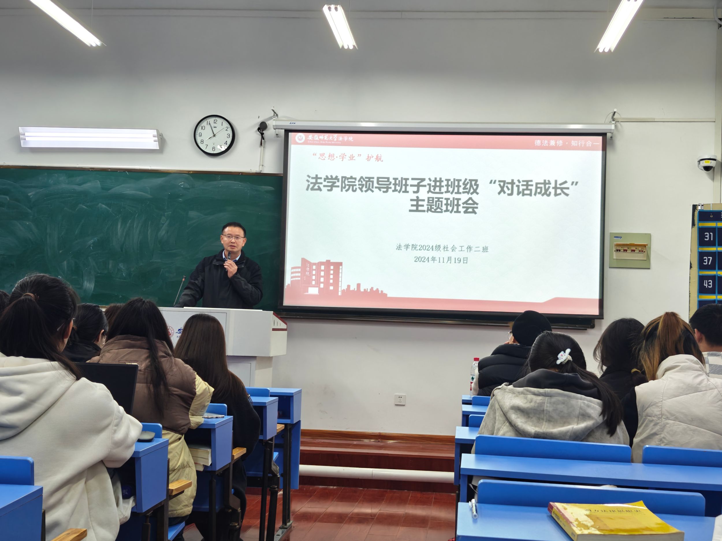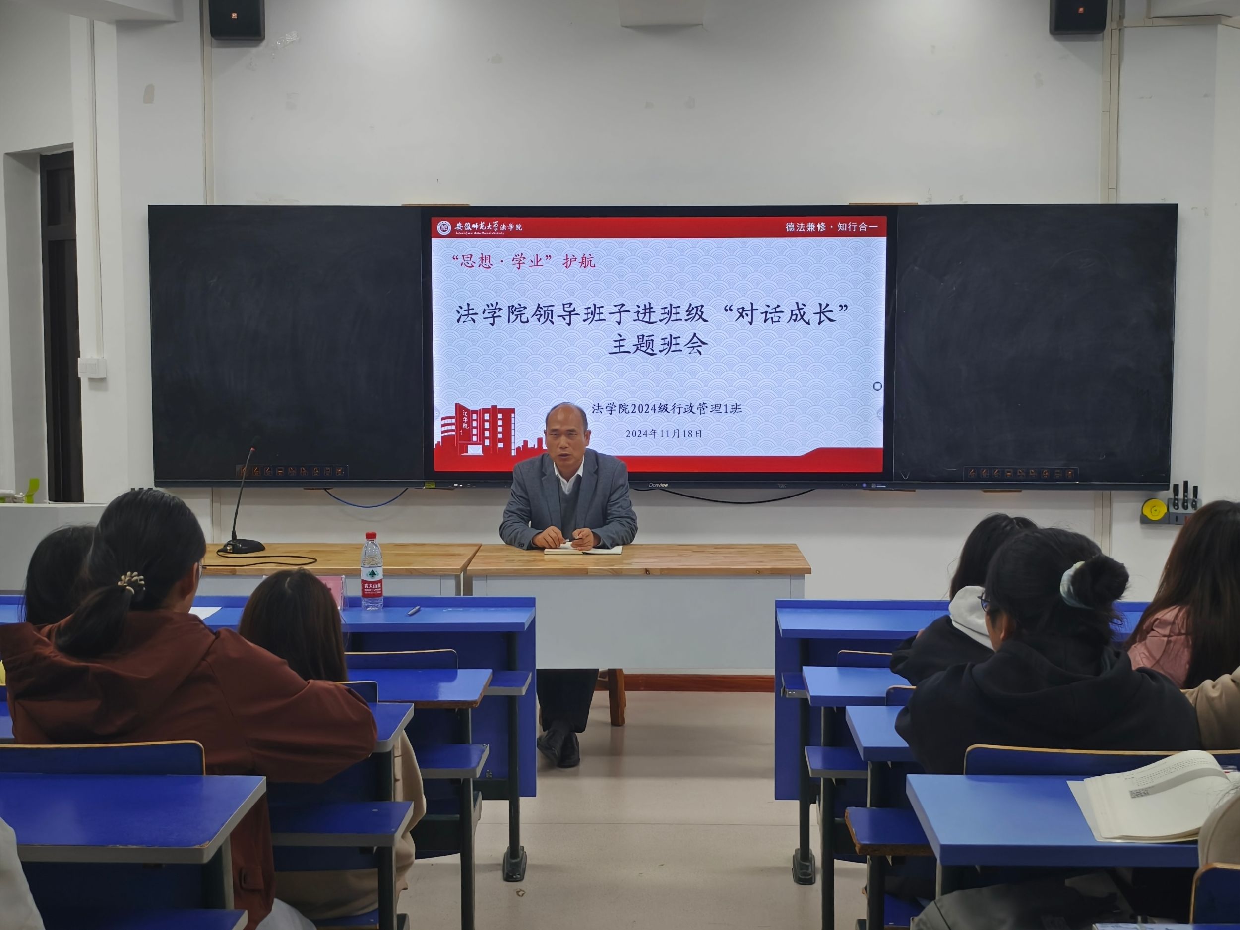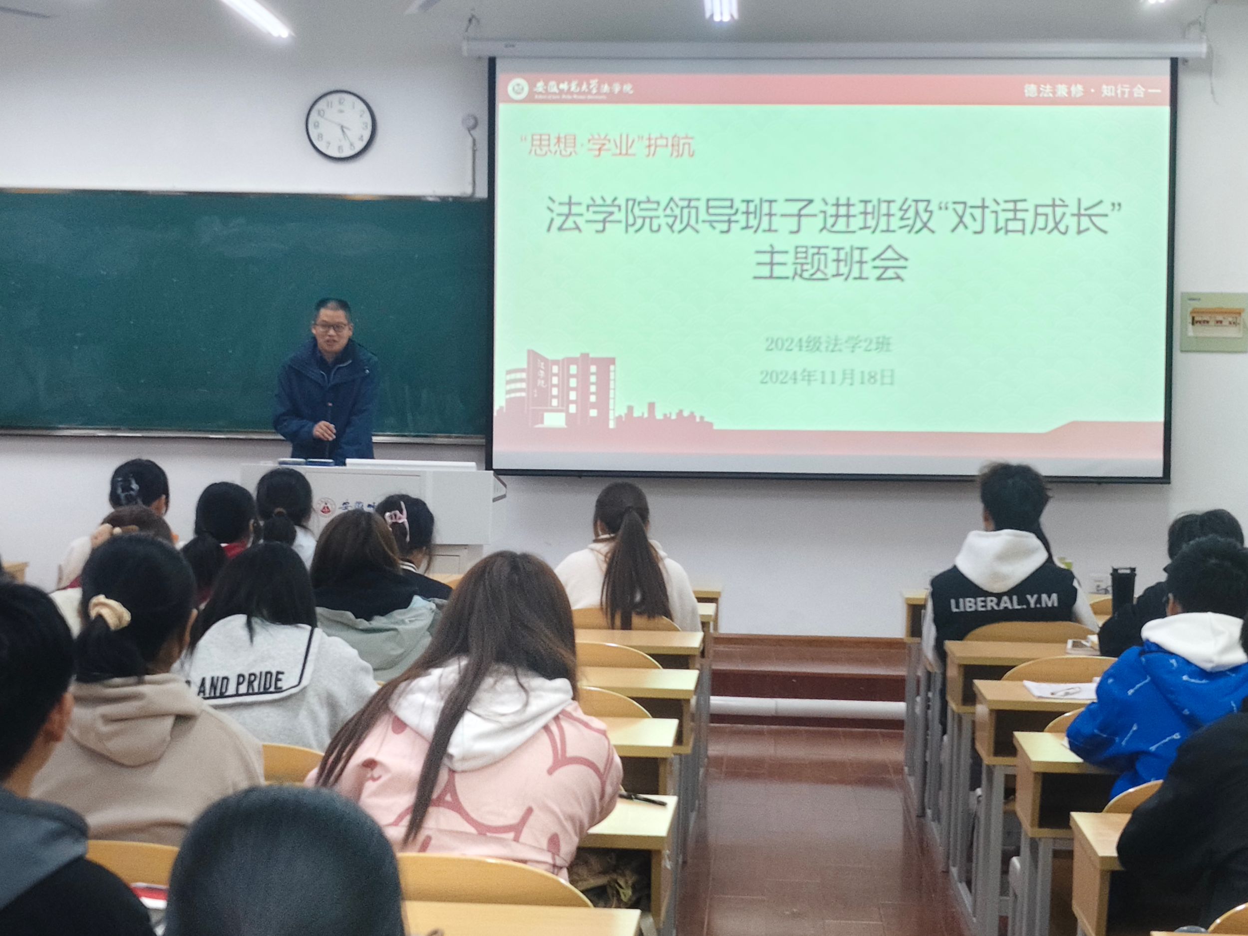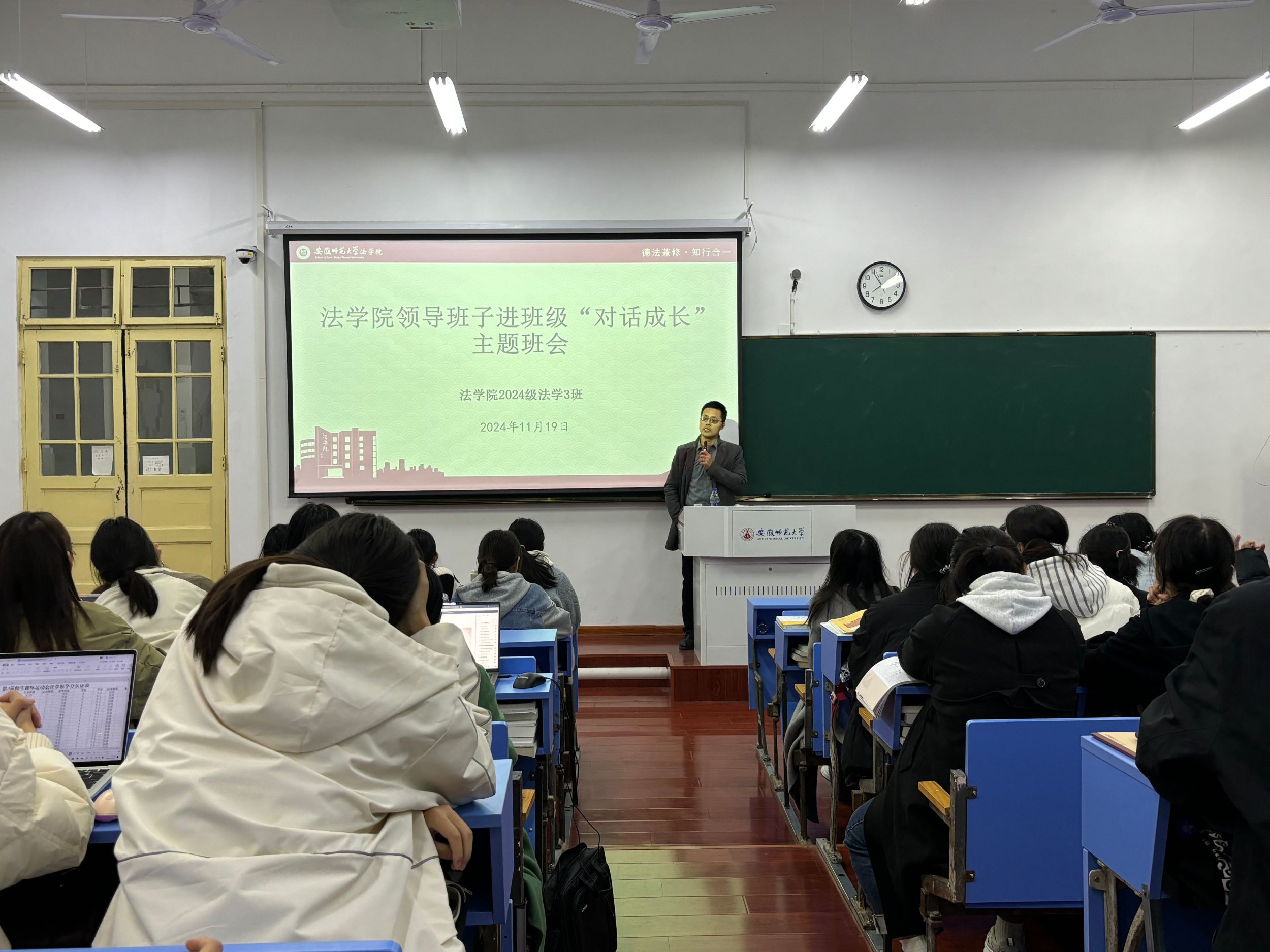 科研副经理陈银珠深入法学专业3班。他分别从专业学习、思想教育和个人生活对同学们提出的问题进行解答,强调同学们要将自身成长与时代需求相结合,立志做有理想、敢担当、能吃苦、肯奋斗的时代新人。陈银珠寄语法学专业的同学们要明确自己的人生目标,不断思索如何实现理想、完善自己,以法治为初心,勇担历史使命,为实现中华民族伟大复兴不懈奋斗。