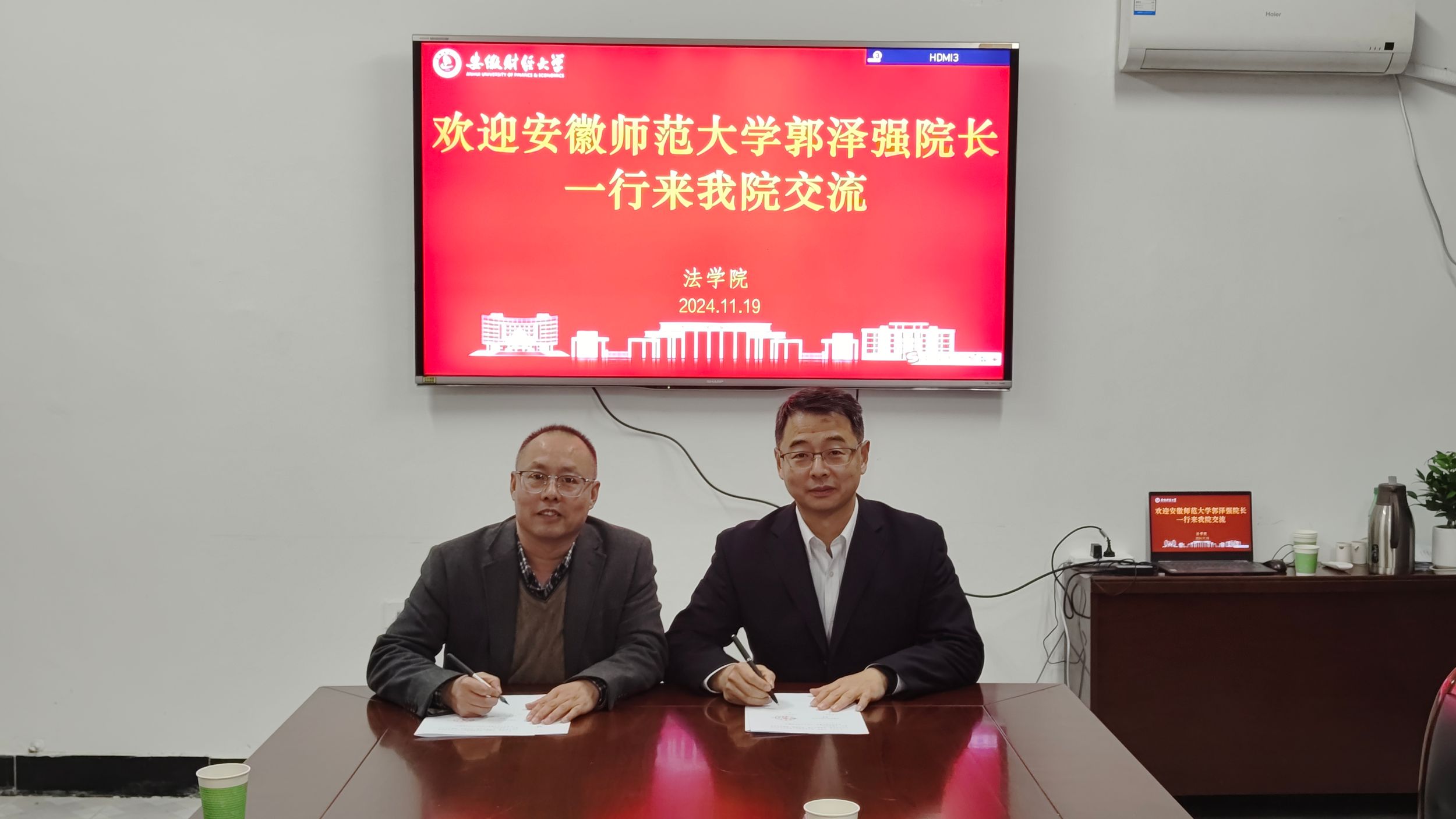 在安徽财经大学,英国上市公司365组织了洽谈交流会,英国上市公司365经理高海,党委副书记舒立,副经理纵博、高毅,团委负责人王婷等参加会议。双方就涉外法治人才培养、学位点建设与员工就业创业工作进行了深入交流。高海、郭泽强分别代表双方签订了战略合作协议。
