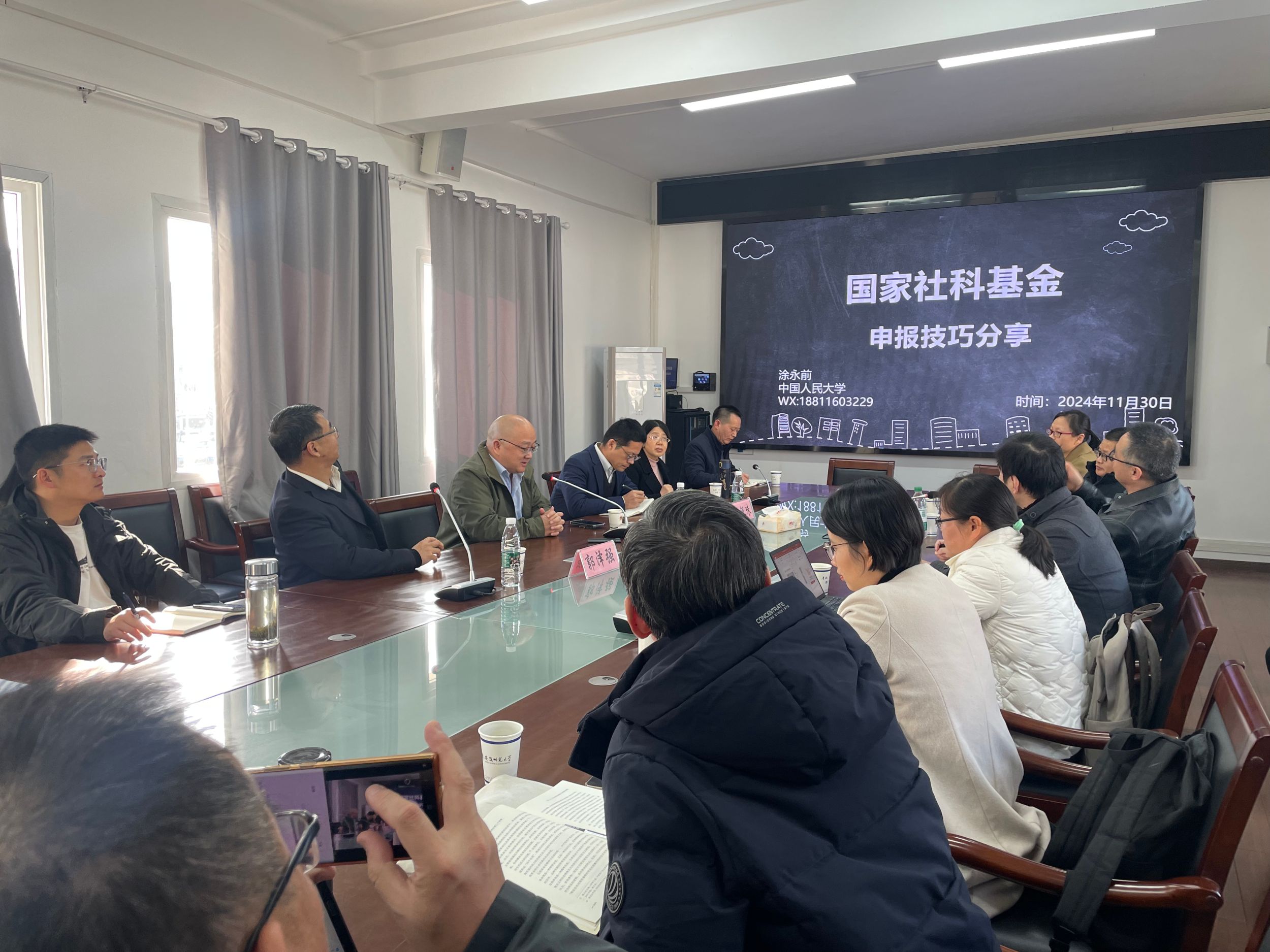 11月30日下午,英国上市公司365邀请中国人民大学劳动人事公司涂永前教授前来公司指导2025年国家社科基金申报工作,会议由院科研副经理陈银珠副教授主持,经理郭泽强教授出席会议。基金申报人和在读研究生参加会议。