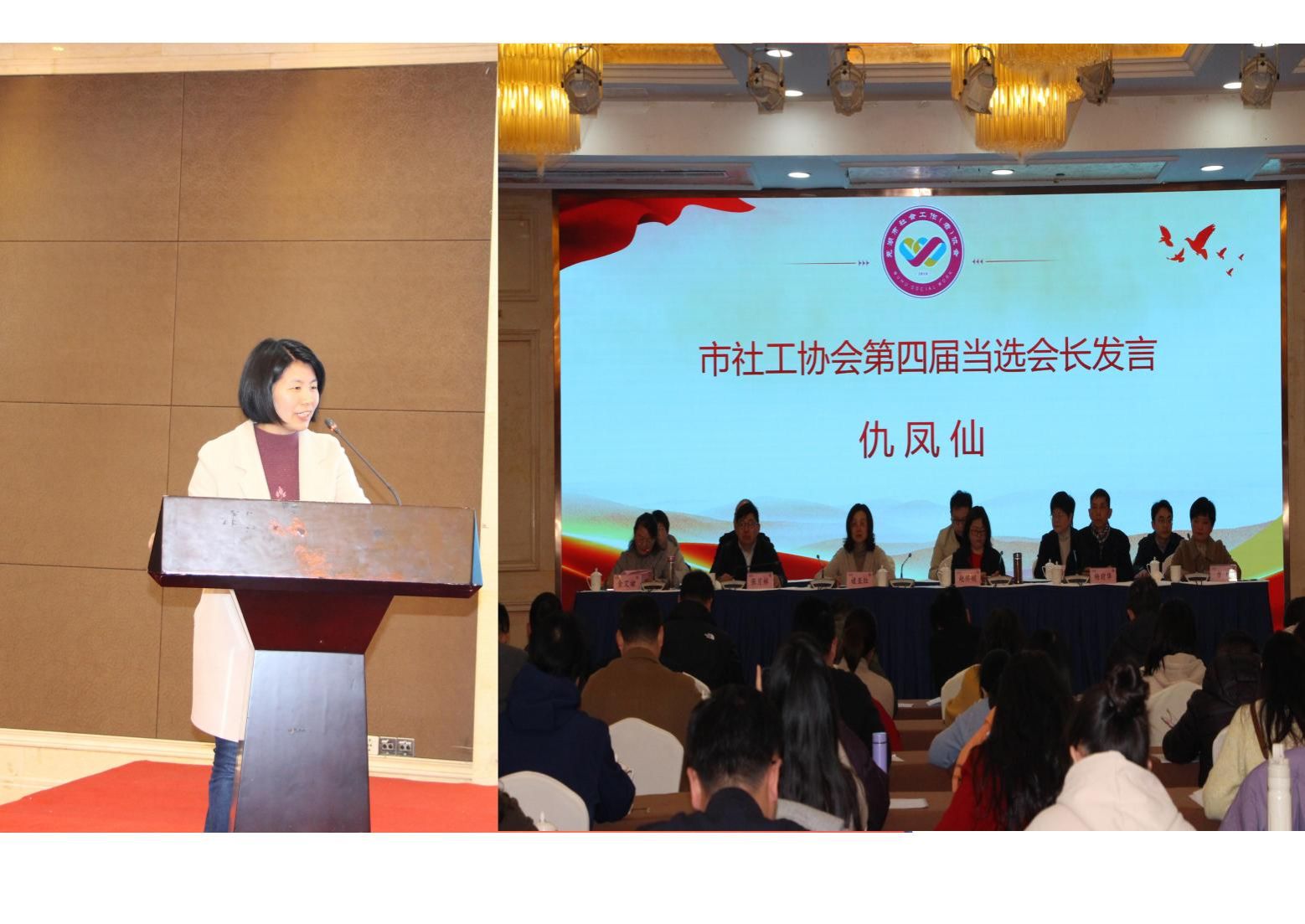 本次会议由全体会员表决通过了各项章程,并选举出协会新一届领导班子成员,公司社会工作系主任仇凤仙老师担任市社工协会新一任会长,并在会上做了表态发言。她首先对前任杨前华会长带领上一届协会领导班子所做出的卓越贡献表示衷心的敬意,对民政局等政府部门对协会的支持表示感谢。仇凤仙并表示芜湖市社会工作(者)协会将在芜湖市委社会工作部领导下,充分发挥社会工作行业平台与枢纽作业,将致力于推动芜湖市社会工作行业的持续进步与发展,推动芜湖市社会工作专业人才队伍建设,使社会工作在芜湖市的经济社会发展中发挥更加积极、重要的作用,共同书写协会发展的新篇章。
