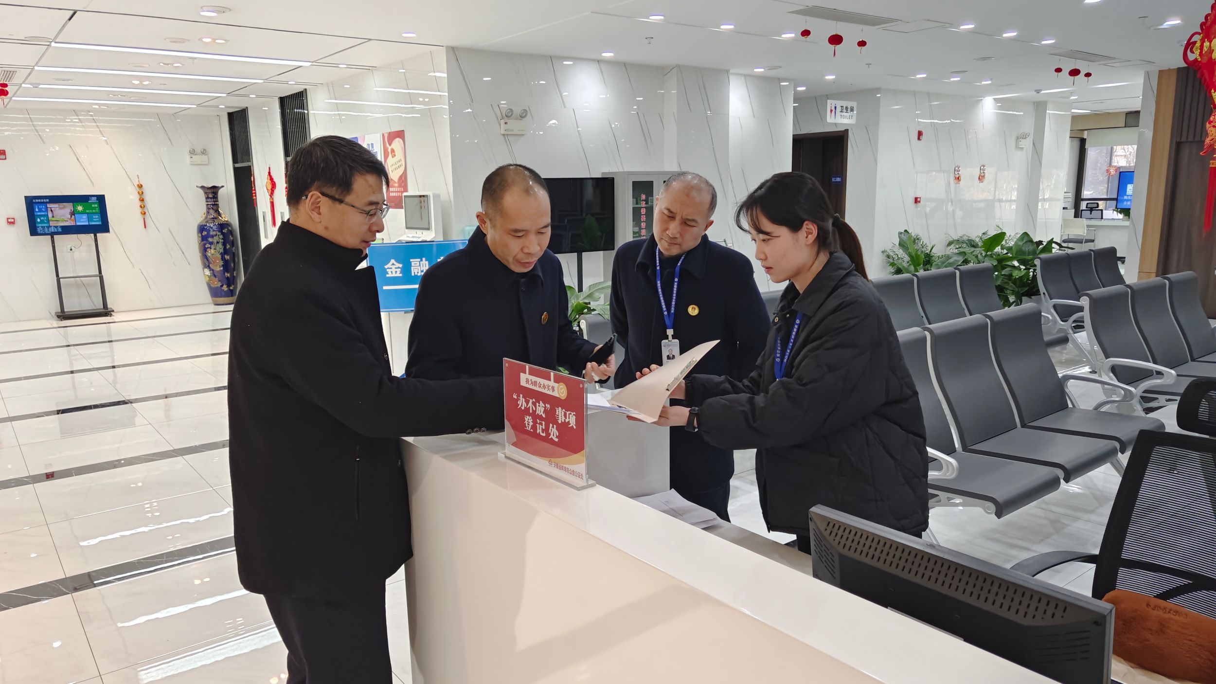 最后,郭泽强一行来到蚌埠市众信公证处,在公证处主任章锡丰、副主任江永俊等人的陪同下参观了办事大厅和工作区域,详细了解了公证处的业务范围、工作流程和用工需要,并邀请公证处来校选聘毕业生。