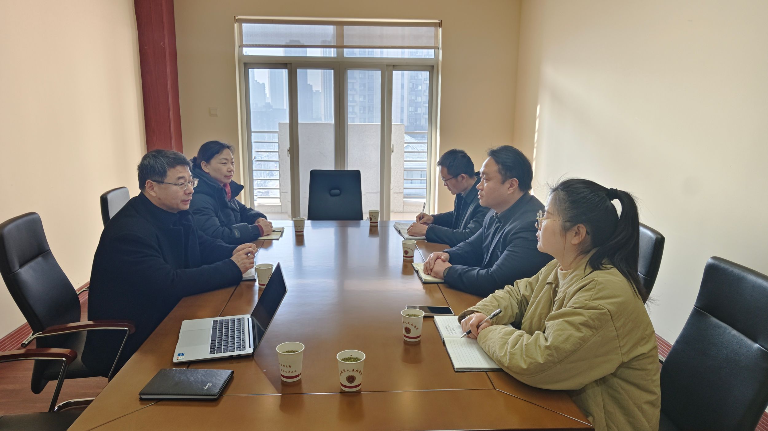 在市公共法律服务中心,中心主任欧丽娟,工作人员朱石磊、周孟雨等接待了郭泽强一行。双方就法律援助案件办理、案例法学理论研究进行了交流。