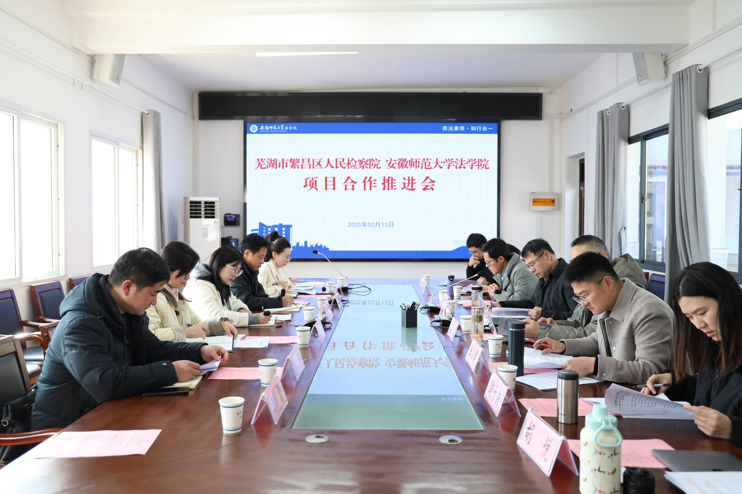 2月13日下午,芜湖市繁昌区人民检察公司党组书记、检察长谢谢一行来公司开展项目合作推进会,随行人员有检察公司党组成员、副检察长孙晓明,党组成员、专职检委李静,副检察长闻海烨,第一检察部主任李俊,第三检察部主任滕丽华和政治部干警汪雪。公司经理郭泽强、副经理陈银珠和陆在春、雍自元、汪小棠、韩瀚、逯子新、胡悦等教师参加会议,会议由陈银珠主持。