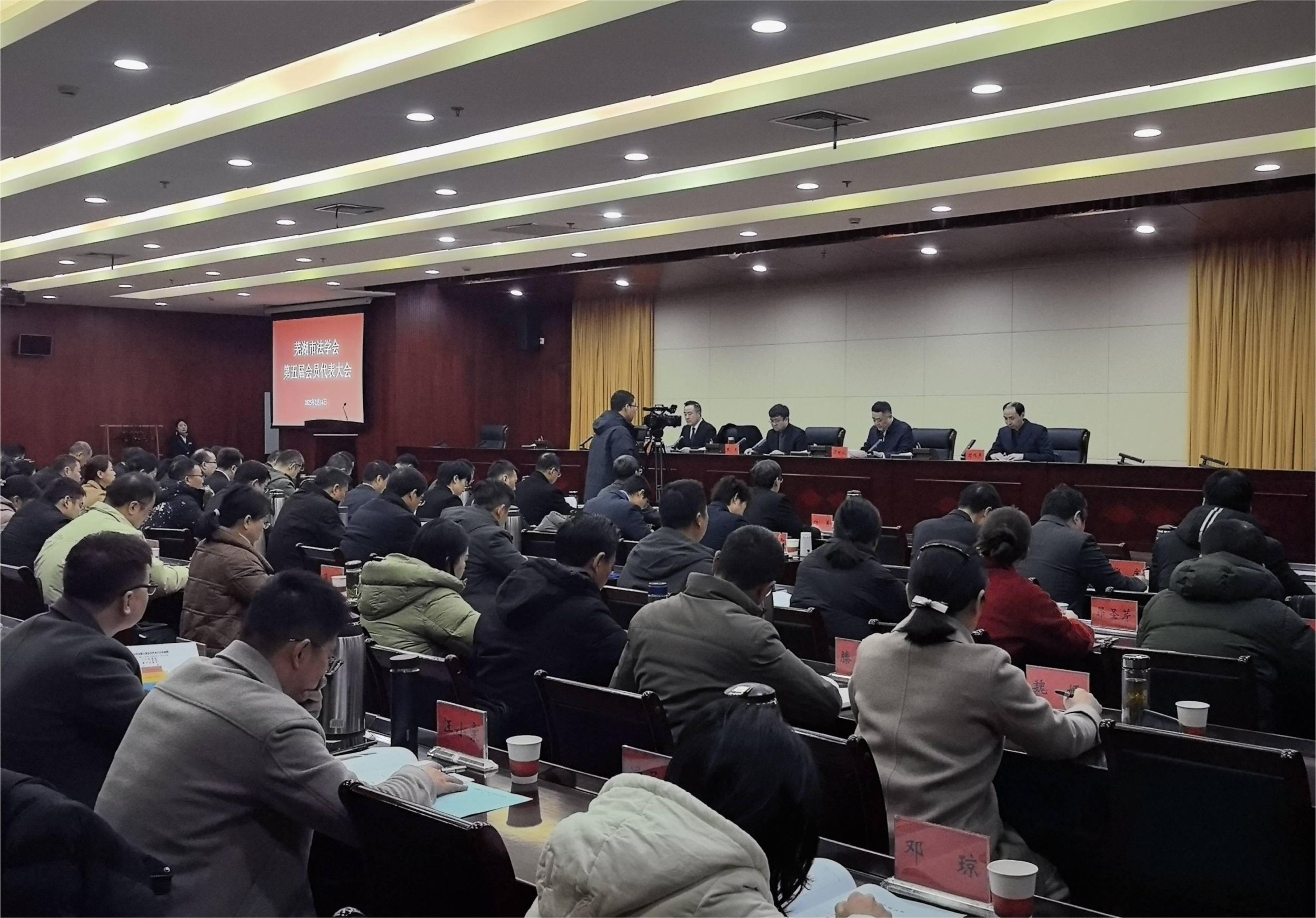 2025年2月14日,芜湖市法学会第五次会员代表大会在芜湖召开。芜湖市委书记宁波作出批示,省法学会专职副会长黄世斌到会致辞,市政协主席、市委政法委书记张东出席并讲话。来自市委政法委、市人大、市中院、市检察院、市公安局、市司法局、市政协、高等院校、律所等部门百余名代表参加会议。公司经理郭泽强、副经理陈银珠,王宇松、汪小棠、逯子新作为代表参加大会。