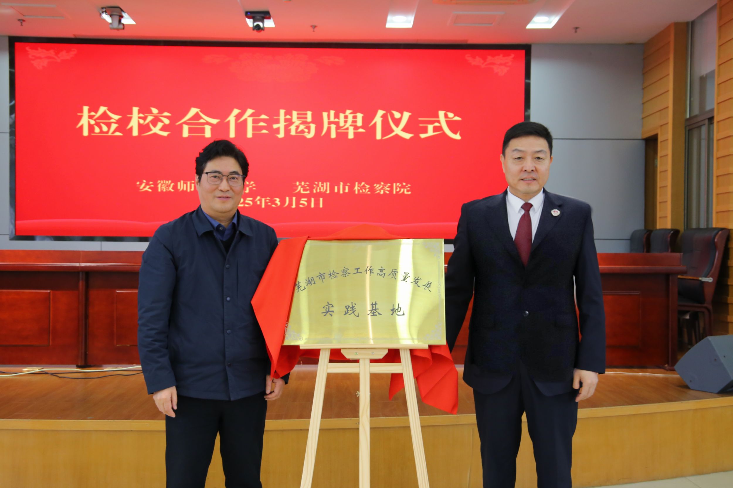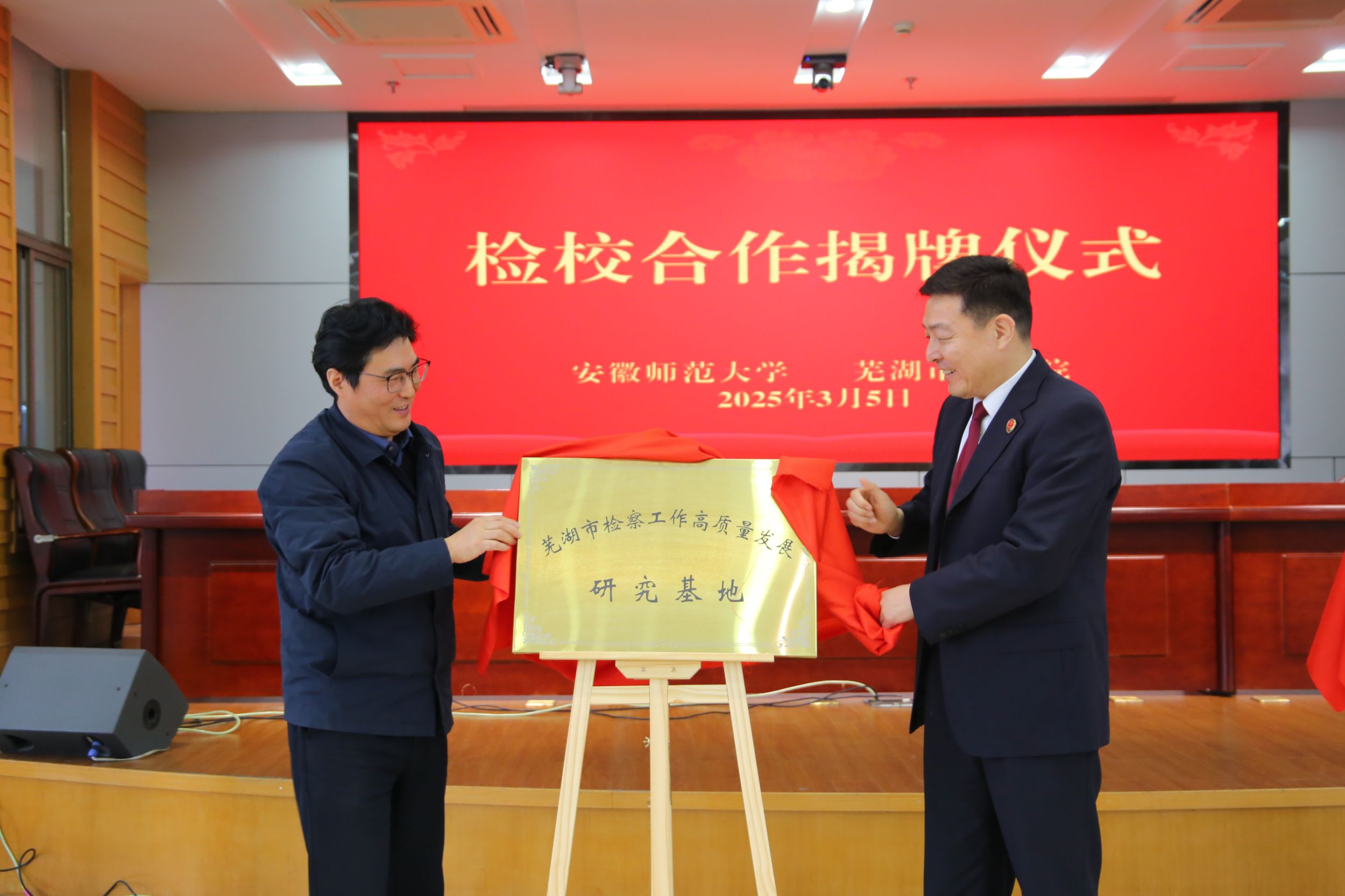 赵昊平和高峰为“芜湖市检察工作高质量发展研究基地”和“芜湖市检察工作高质量发展实践基地”揭牌。