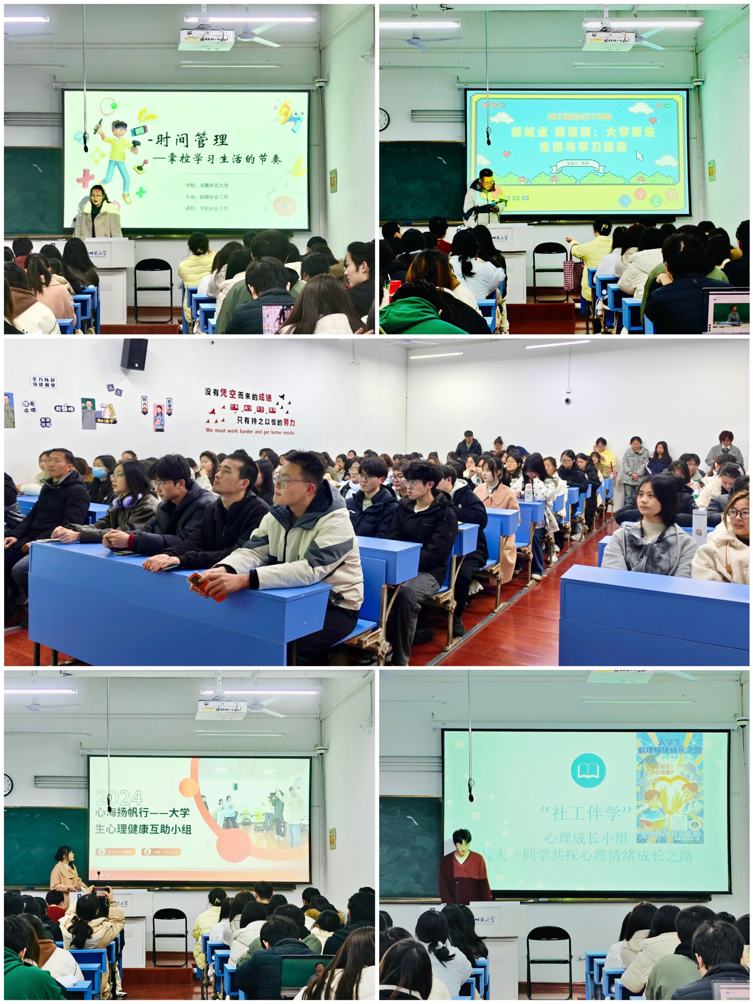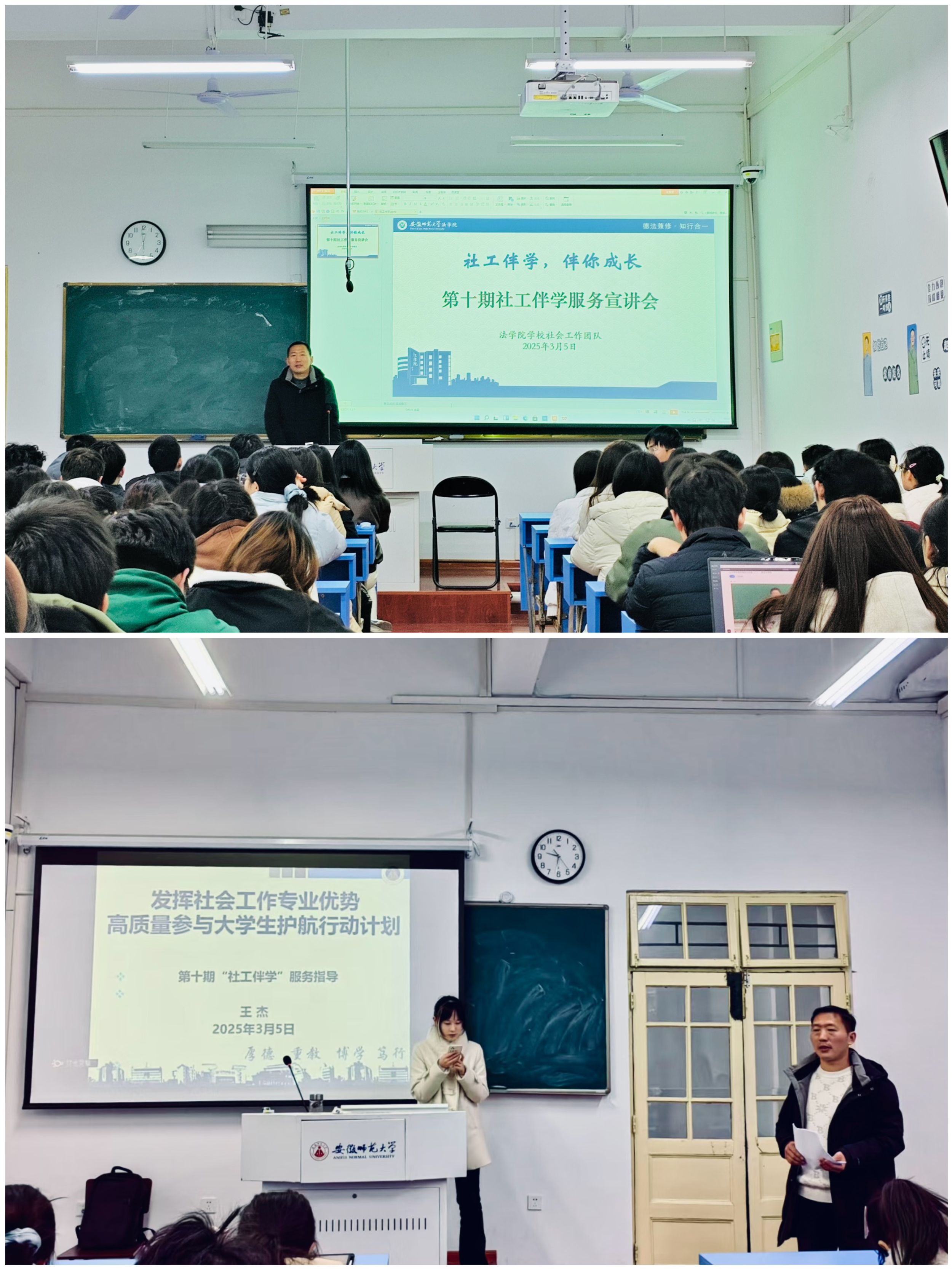 为深化"专业教师+朋辈群体"协同育人模式,助力老员工护航行动计划有效实施,3月5日晚,社会工作专业第十期"社工伴学"护航服务启动仪式在教学楼202教室举行。22级社会工作专业班主任王杰、辅导员刘沐景出席会议,24级社会工作专业本科生及部分研究生参加会议。24级社会工作专业辅导员李冉冉主持会议。