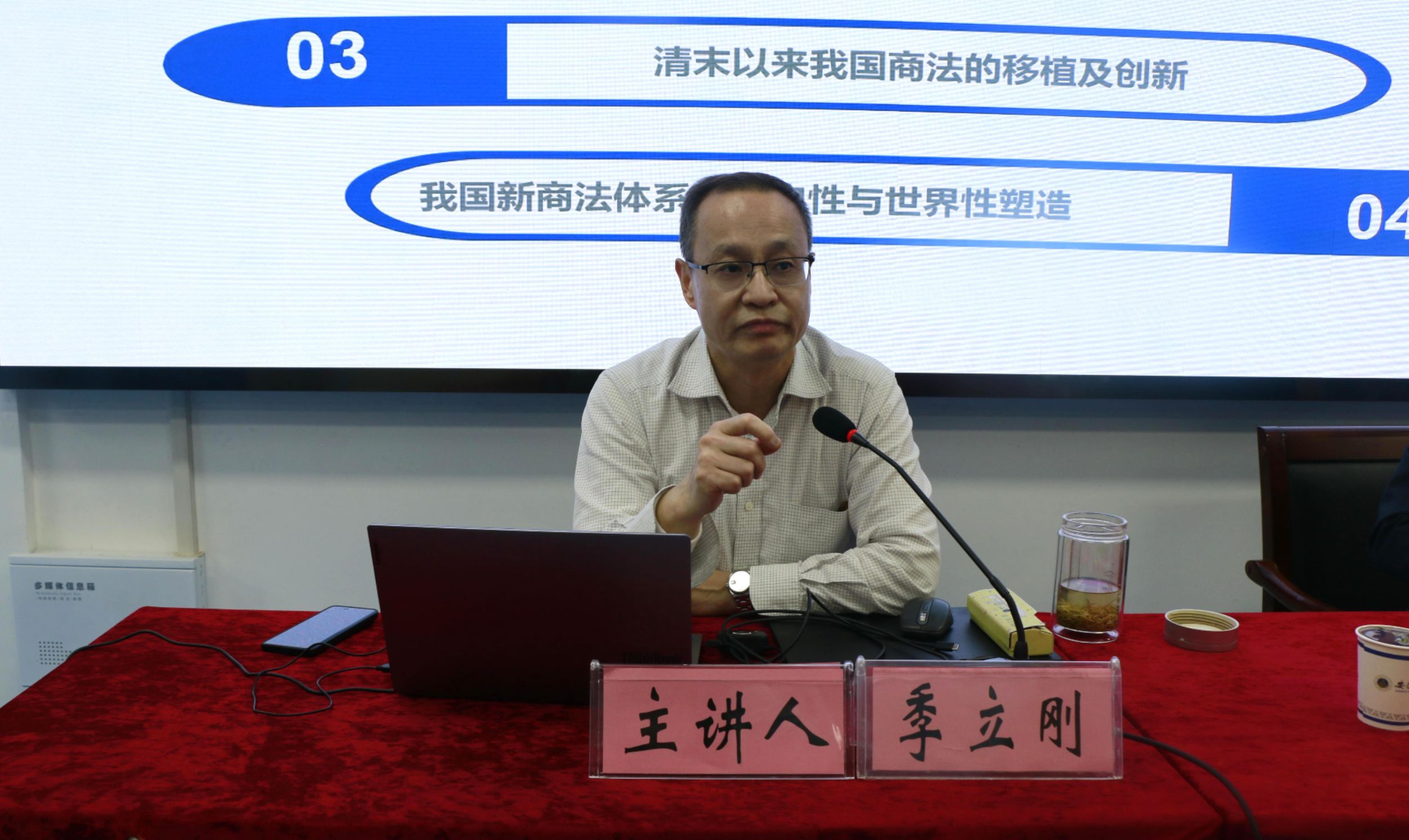 季立刚围绕“论我国商事法律发展的历史性与世界性”这一主题展开讲解。在“西方‘民商法’的‘源’与‘流’”部分,他梳理西方民商法的起源与发展脉络,以罗马法为起点,阐述其在不同历史时期的演变,并通过案例让同学们清晰了解西方民商法的根基与发展路径。谈到“如何认识‘民商分立’抑或‘民商合一’”,季教授指出这是法学界的重要争论,涉及立法体制、制度价值、司法适用等多方面。他对比各国立法模式,如法国、德国的民商分立与瑞士、意大利的民商合一,分析其历史特征及形成原因,强调二元司法体系与特定历史条件分别对两种模式的影响。在“清末以来我国民商法学的移植及创新”板块,季教授阐述了清末因内忧外患及商业阶层崛起,开启商事立法现代化进程,初步构建了商事法律框架体系,为近代经济秩序的形成奠定基础。最后,在“我国新商法体系的历史性与世界性素质”方面,季教授强调我国新商法体系既继承本土商业习惯法,又接轨国际通行规则,在全球化贸易中展现强大世界性,为我国商业活动提供法律保障。