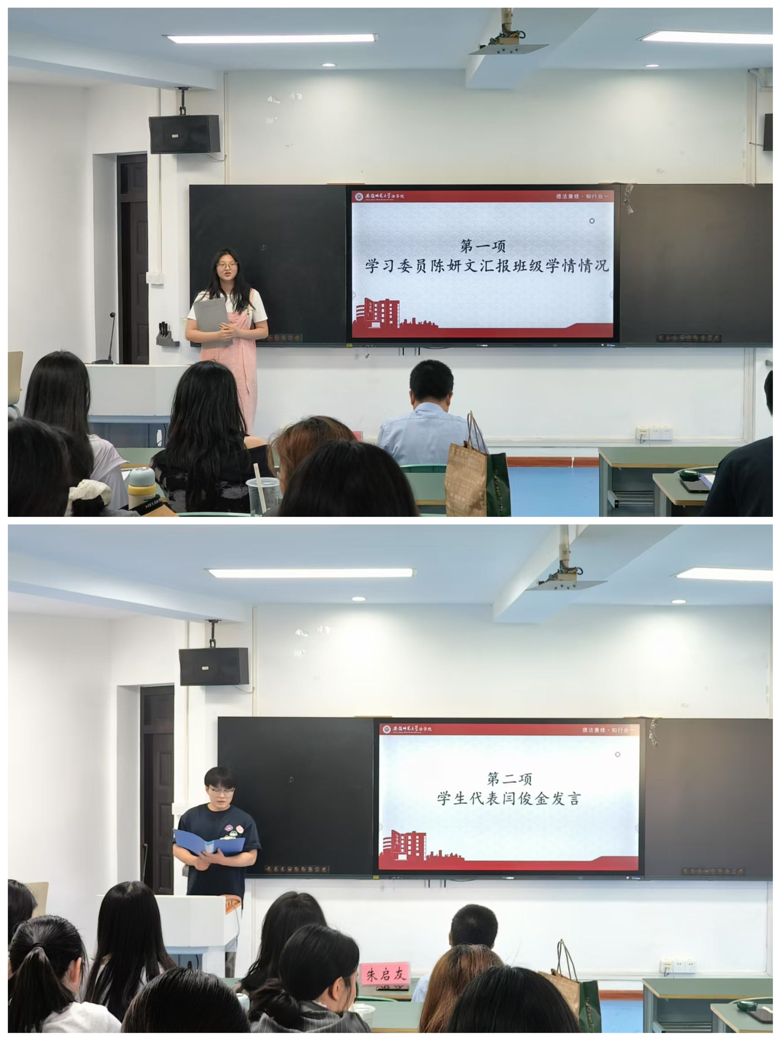会议伊始,张宏玮对老师的到来表示热烈欢迎,并简要介绍了会议议程。首先,学习委员陈妍文详细汇报了班级学情情况。她以“团结”“积累”“前行”三个关键词对班级的大学历程进行总结。随后,员工代表闫俊金发言,他提出了当前同学们面临的几个主要问题,包括考研与实习时间冲突、专业跨考等。