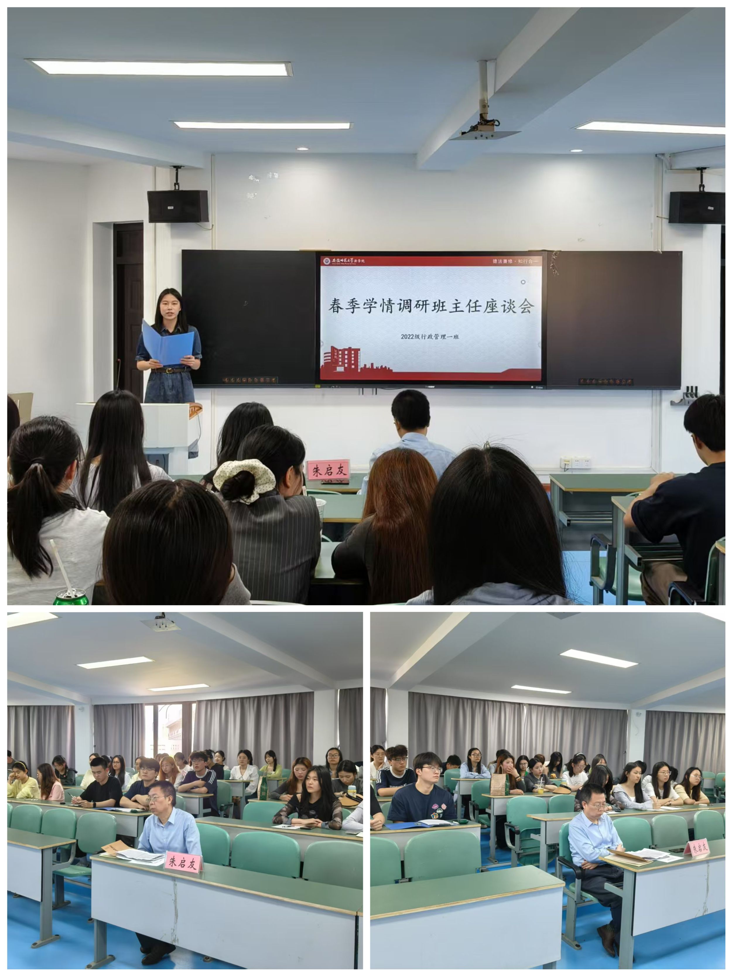 为深入贯彻落实老员工护航行动计划,切实解决员工成长发展中的实际问题,4月18日下午,2022级行政管理专业在行政楼314教室召开春季学情调研班主任座谈会。会议由张宏玮主持,班主任朱启友出席指导,全体员工参与。