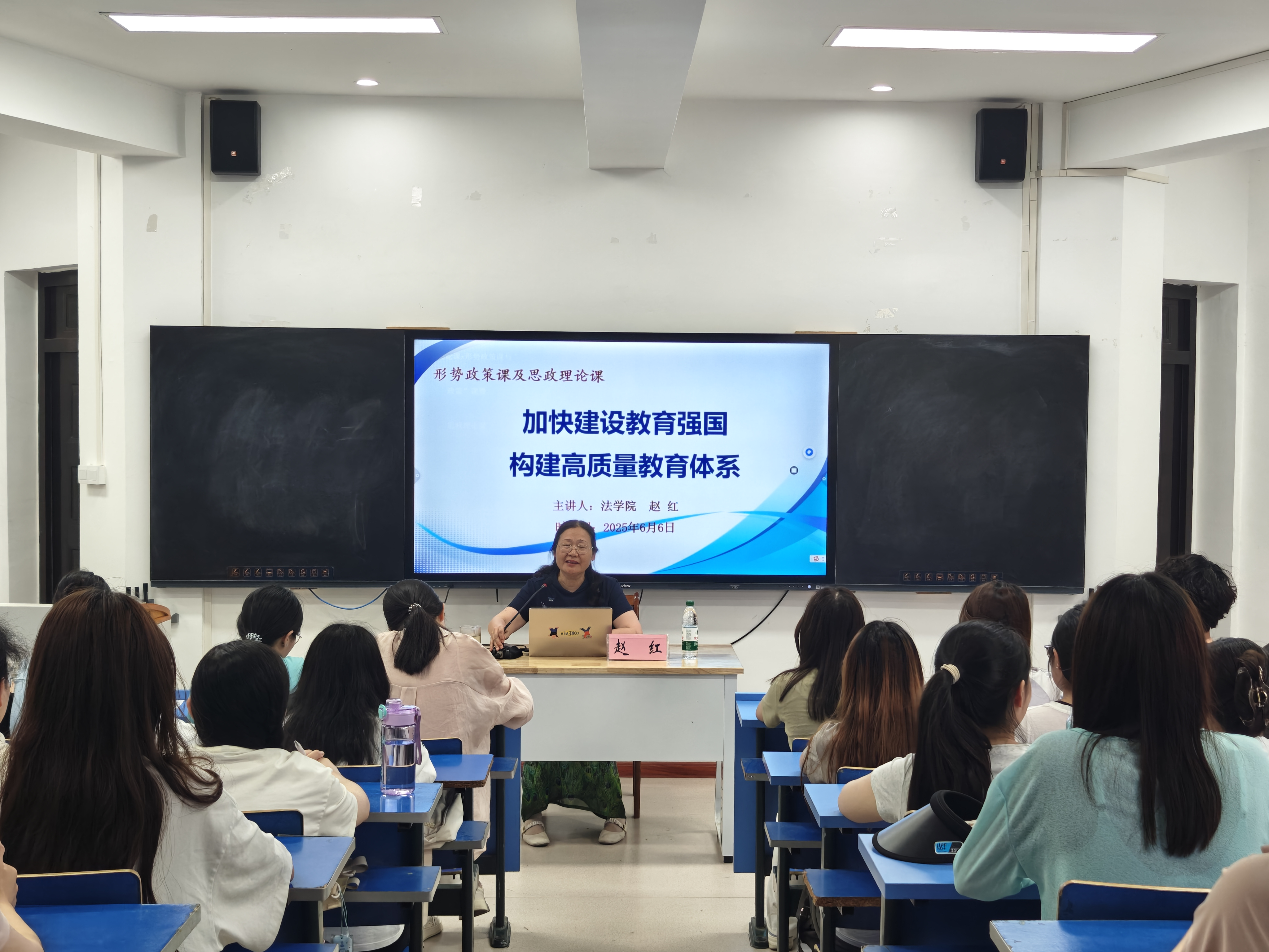 6月6日下午,公司党委书记赵红走进教室为公司2024级社会工作专业本科生讲授题为“加快建设教育强国、构建高质量教育体系”的形势与政策课。