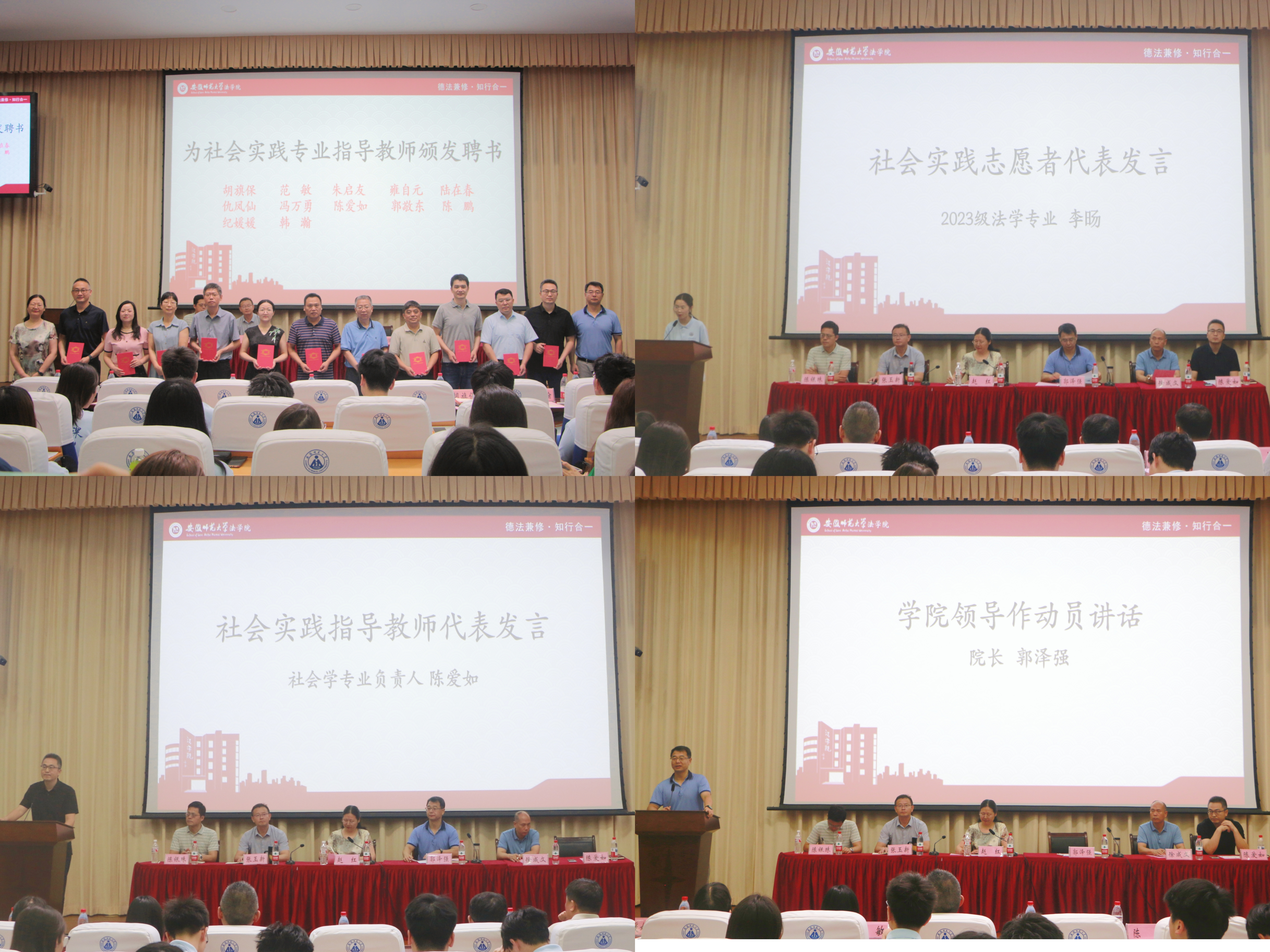 经理郭泽强作动员讲话,从国家“五育并举”教育体系、公司实践育人目标、员工职业发展三方面阐释实践意义,提出三点要求:一要带着问题意识深入基层,聚焦依法治国、乡村振兴等国家战略开展调研;二要严守团队纪律与意识形态安全红线,杜绝“打卡式”实践调研;三要深化成果转化,以高质量调研报告、案例分析反哺专业学习,提升就业竞争力。他寄语学子做“有温度的服务者、有锐度的观察者、有高度的传播者”,让法治信仰在实践中生根发芽。