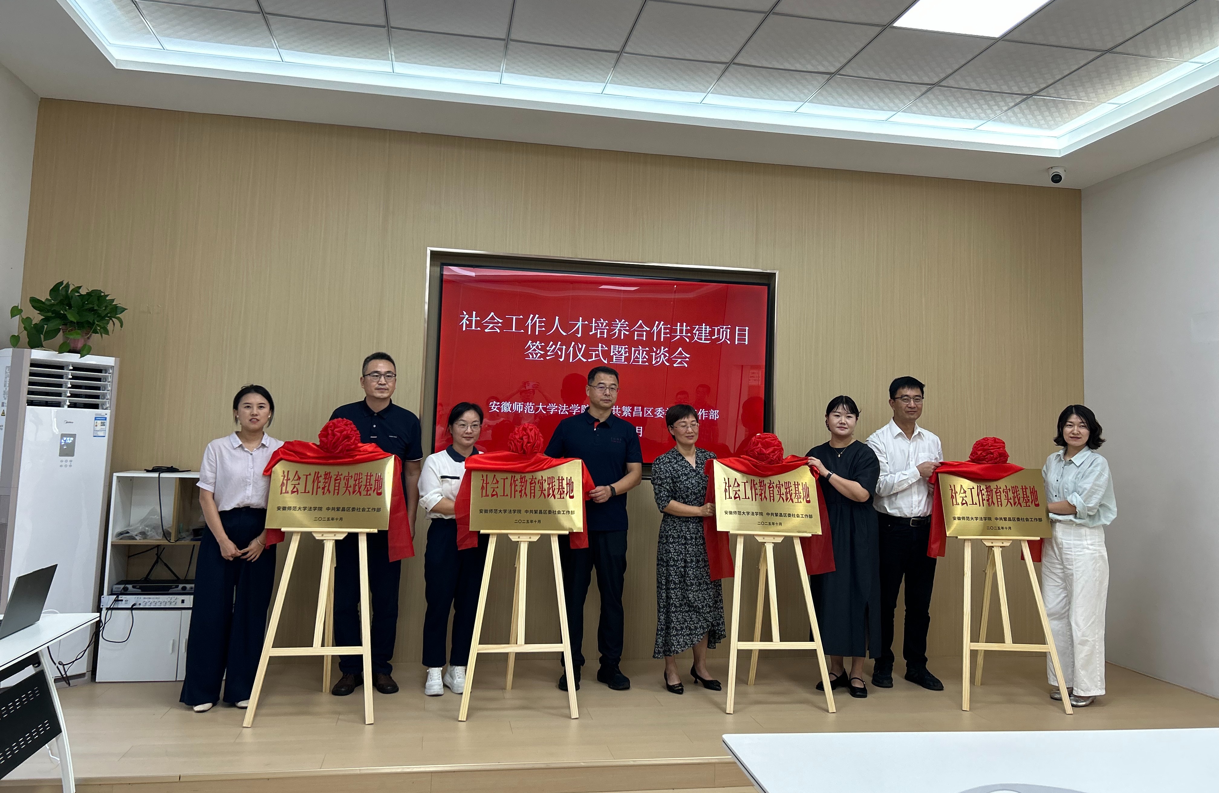 座谈交流后,双方正式进入项目签约环节。英国上市公司365副经理陈爱如与繁昌区委社会工作部副部长张楠共同签署合作共建协议,明确双方将在人才培养、实习实践、课题研究、社区服务等领域开展长期合作。签约仪式后,与会领导共同为“社会工作教育实践基地”揭牌,标志着双方合作正式进入实质性推进阶段。