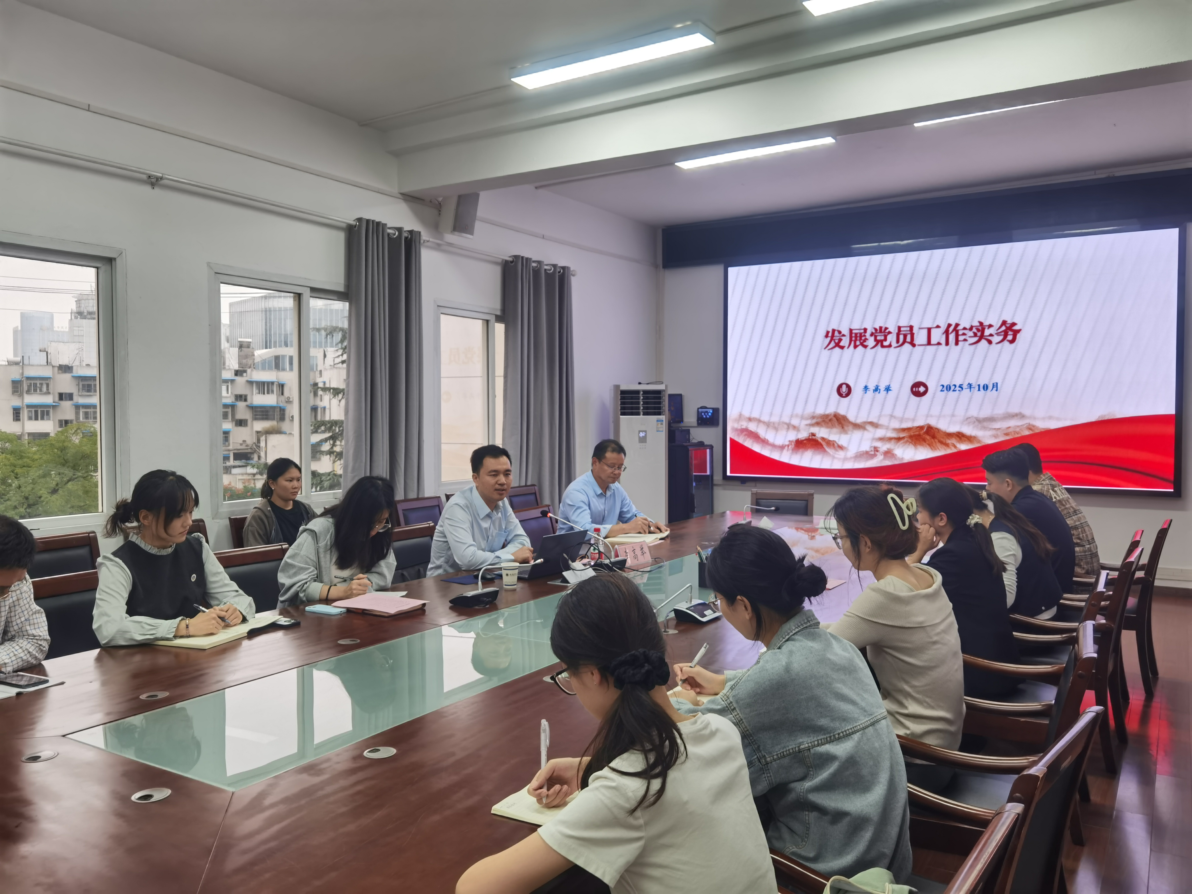 1013日下午,公司党委于515会议室召开发展党员工作专题培训会。组织部副部长李高举应邀主讲《发展党员工作实务》。会议由公司党委副书记、纪委书记张玉新主持,公司党支部书记、支委和全体辅导员参会。