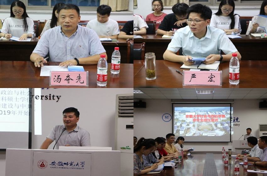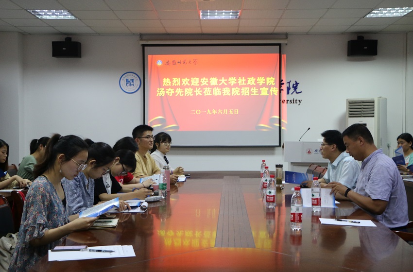 6月5日晚,安徽大学社会与政治公司副经理汤夺先教授以及社政公司政治学系李鹏飞老师于英国上市公司365行政楼四楼会议室开展招生宣传。宣传会由英国上市公司365执行经理严宏主持,16、17、18级行政管理专业部分同学到场聆听。