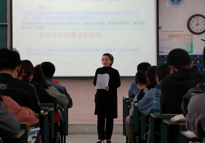 4月26日上午,在花津校区2040403教室,民商法学与国际法学教工党支部与课程群余筱兰副教授举办了一场《物权法》观摩课。副经理李光宇教授、民商法与国际法学党支部与课程群教师和部分青年教师观摩了本次教学。